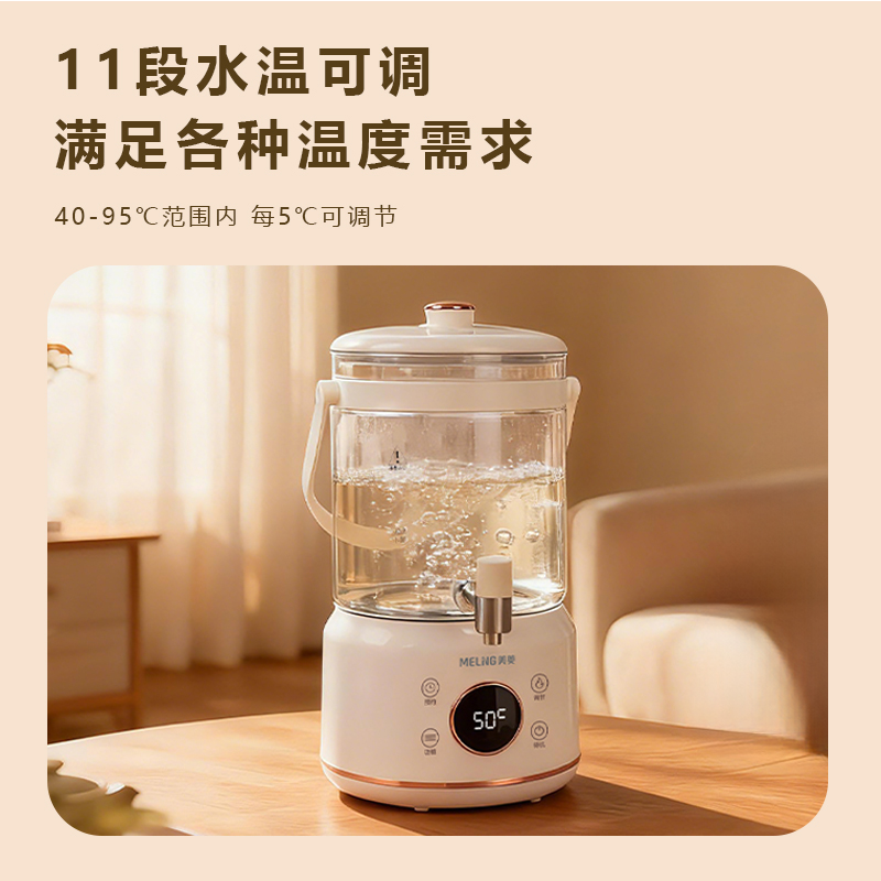 1、6個功能:燒水、花茶、煮茶、涼茶、涼白開、沖奶、,含24小時保溫,24小時預約功能,40-90℃調(diào)溫,