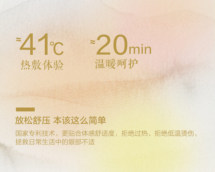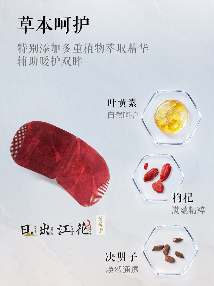 規(guī)格:1片/袋 10袋/盒 香型:葉黃素 保質(zhì)質(zhì):3年 1.添加百合、葉黃素、枸杞、等多重潤養(yǎng)成分,以草木精華溫養(yǎng)眼部。 2.綿密蒸汽熱敷,愉悅疲勞雙眼。 3.圈內(nèi)位置不發(fā)熱,呵護(hù)雙眼。 4.弱彈力耳掛,彈力適中,適合大小臉型;曲線貼合工藝,營造寧靜場域。 5.吸嗅沉浸,枕著江南眠,感受東方香