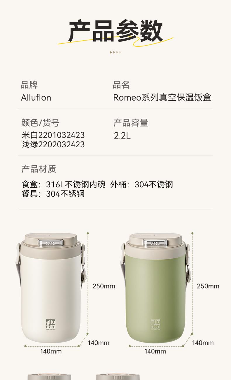 Alluflon阿路弗侖羅馬系列真空保溫飯盒2.2L 禮品已成功加入PPT!