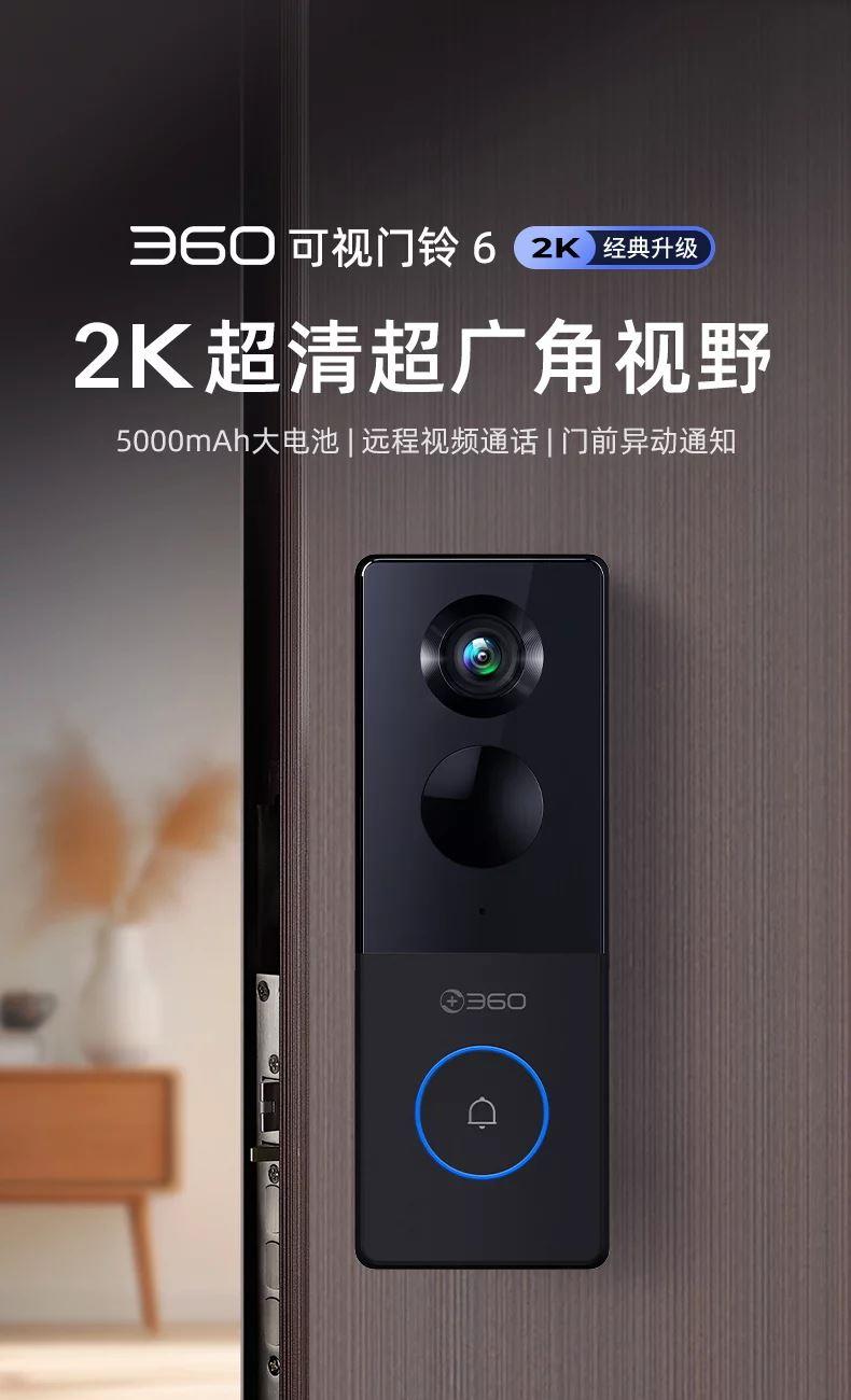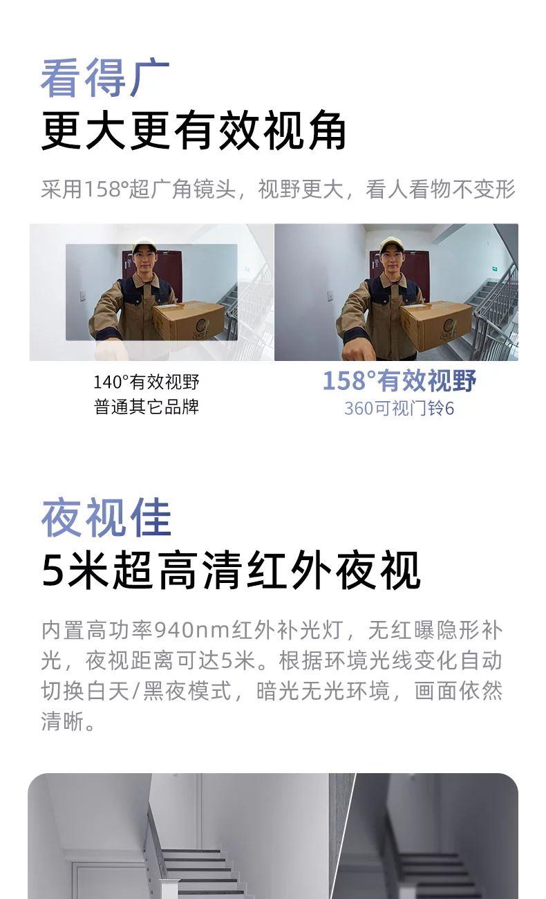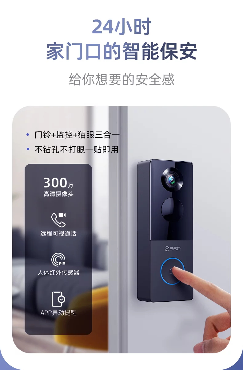 360可視門鈴6300W高清畫質(zhì)電子貓眼手機(jī)遠(yuǎn)程查看對(duì)講