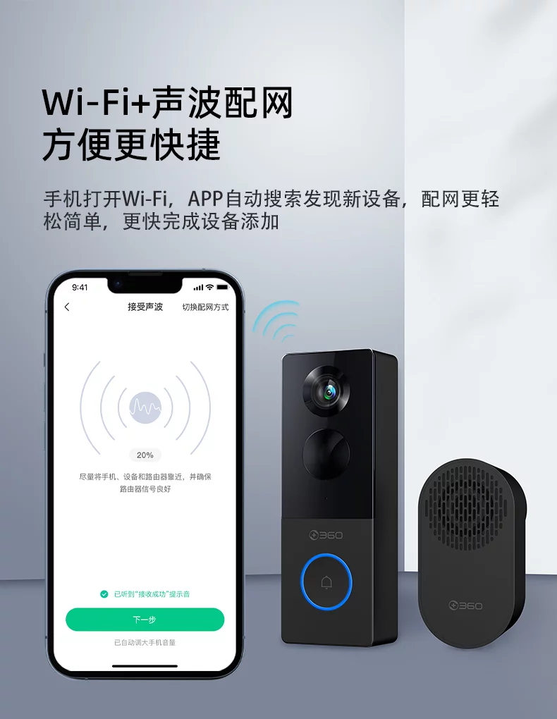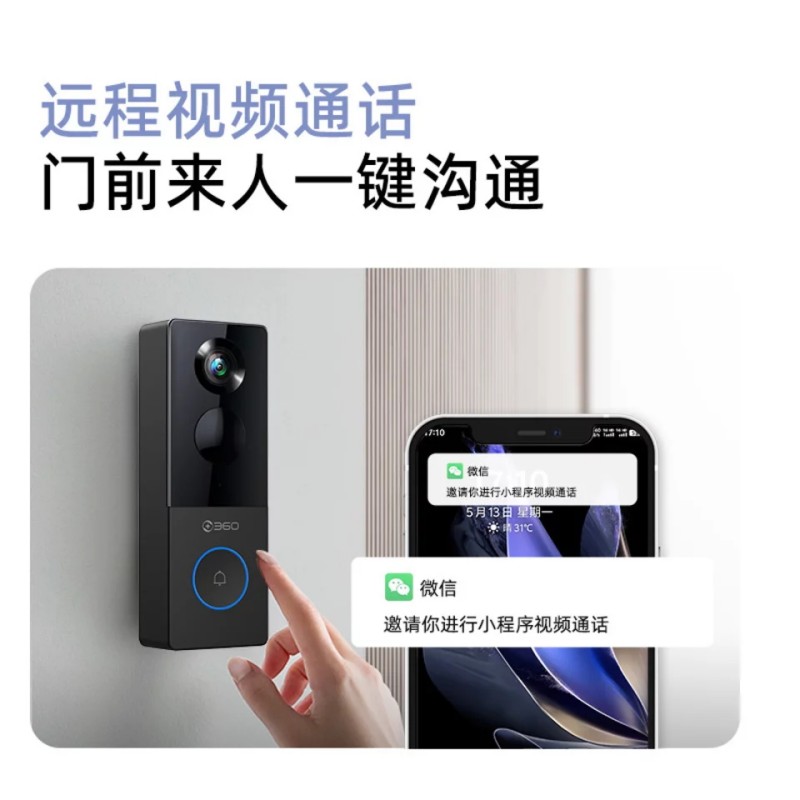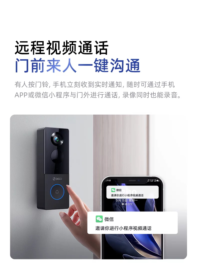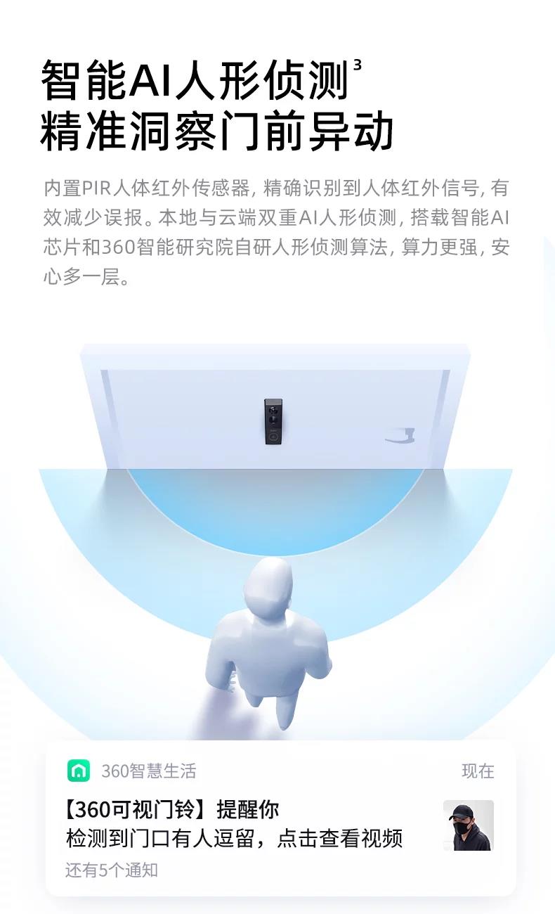 360可視門鈴6300W高清畫質(zhì)電子貓眼手機(jī)遠(yuǎn)程查看對(duì)講