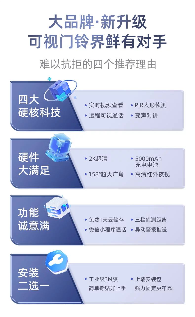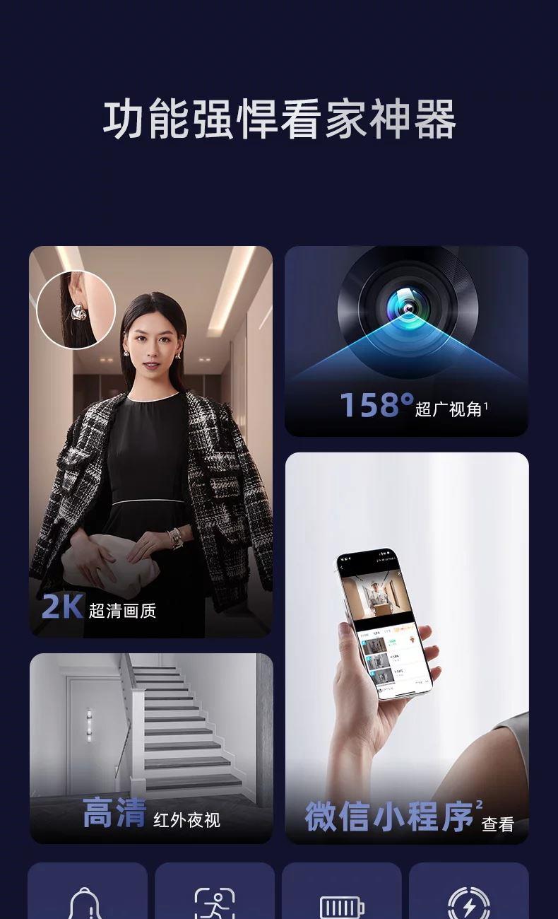 1、300W像素、158度廣角,2K超清畫質(zhì)、5000mAh電池。