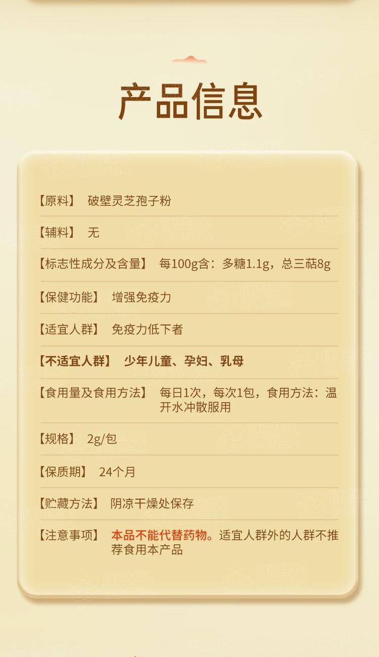 2g/包*30包*1盒 高三萜赤靈芝質(zhì)地厚實(shí)、堅(jiān)硬、營(yíng)養(yǎng)成分含量豐富 低溫物理破壁技術(shù)避免金屬污染,吸收更充分 靈芝三萜含量高達(dá)8%