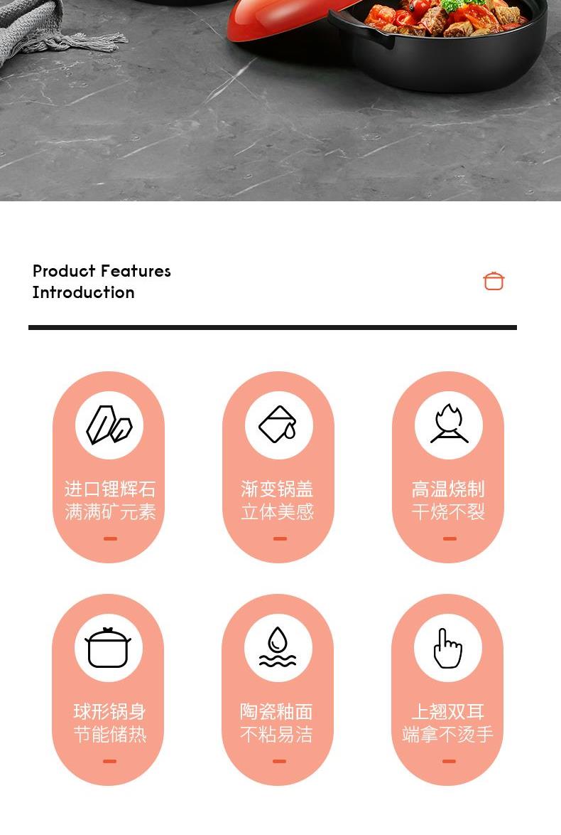 容量:4.5L 型號(hào):RXC45B3Q 材質(zhì):耐熱瓷土 箱尺寸:680*318*635mm 彩盒尺寸:302*220*307mm 1、進(jìn)口鋰輝石,滿滿礦元素 2、漸變鍋蓋,立體美感 3、高溫?zé)疲灰组_(kāi)裂 4、陶瓷釉面,不粘易潔 5、上翹雙耳,端拿不燙 6、球形鍋身,節(jié)能儲(chǔ)熱