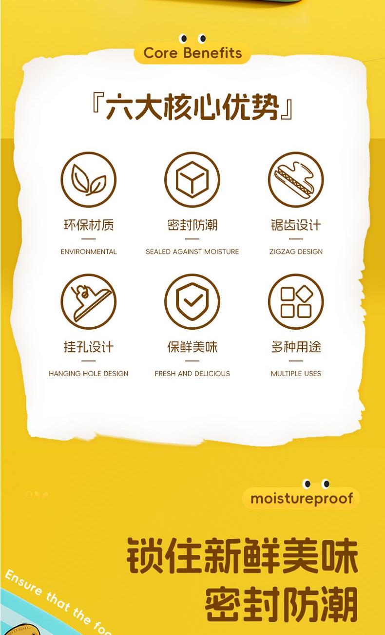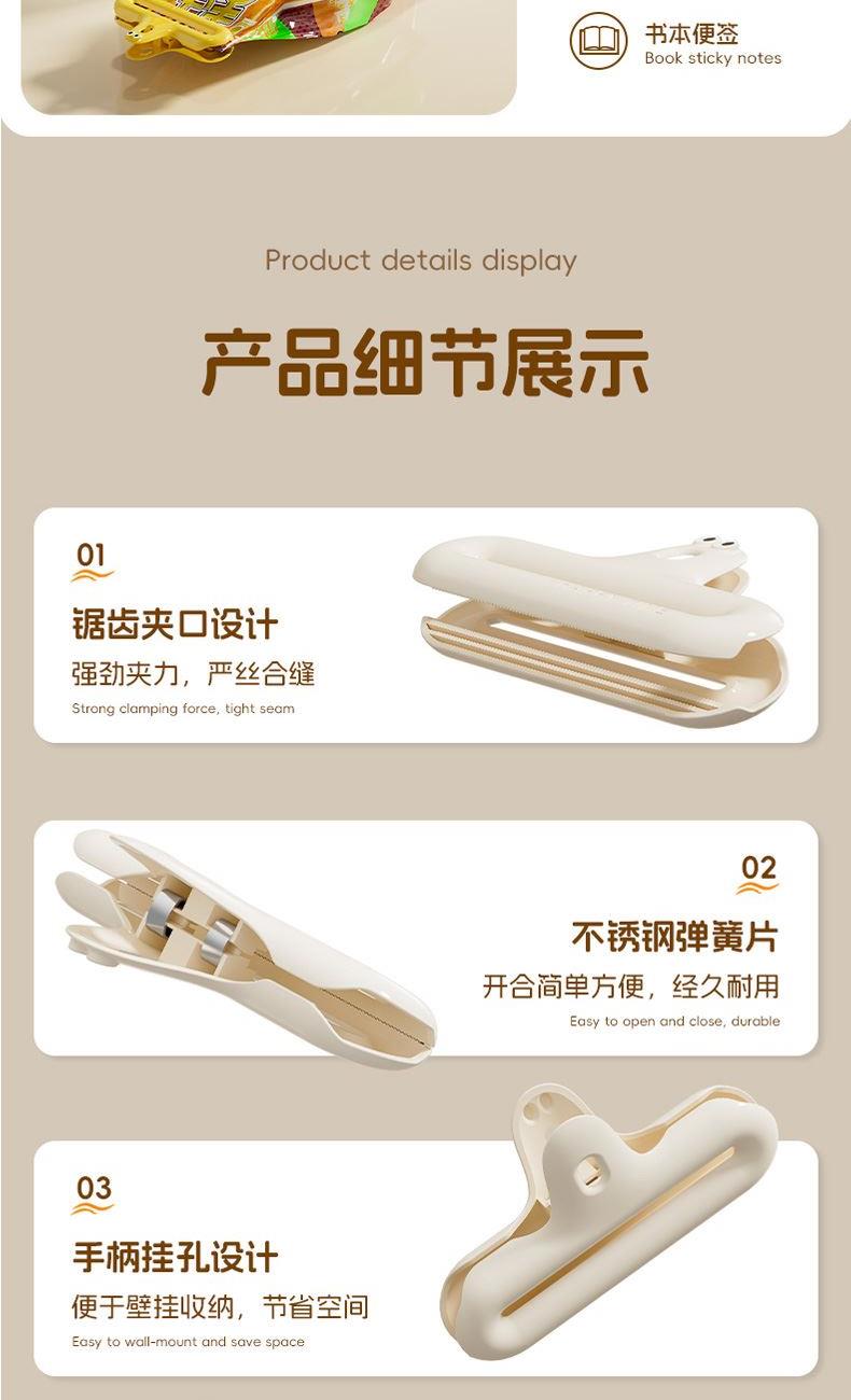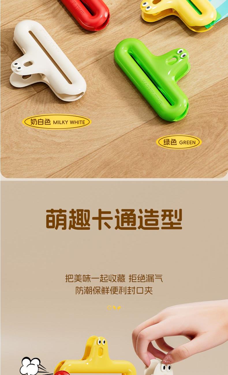 產(chǎn)品配置:趣味密封夾4只裝 產(chǎn)品型號(hào):ZJ-04A 產(chǎn)品材質(zhì):ABS+金屬 產(chǎn)品顏色:混色 產(chǎn)品包裝:OPP袋 卡通封口夾采用ABS環(huán)保材質(zhì),強(qiáng)勁夾力防潮保鮮,食物不易漏氣,掛孔設(shè)計(jì),隨處可放