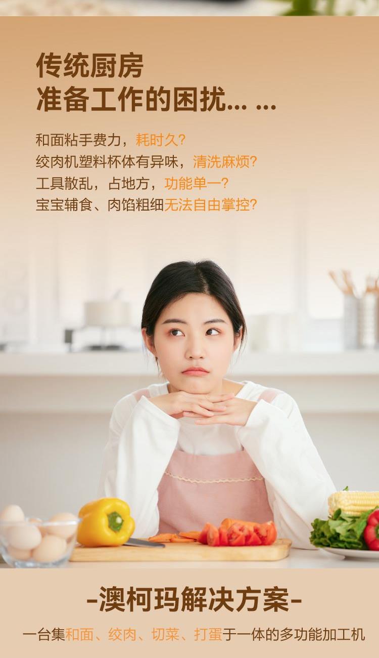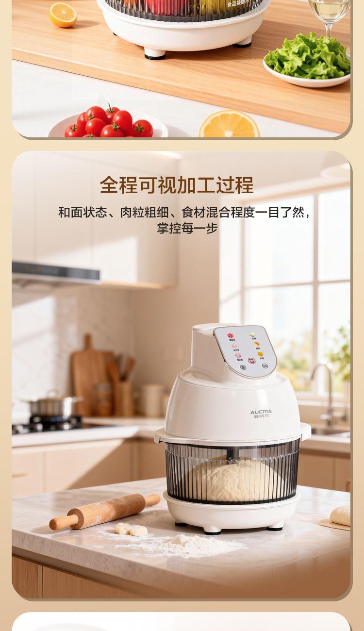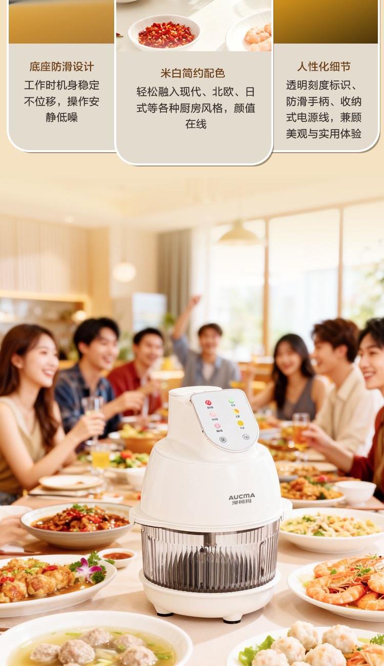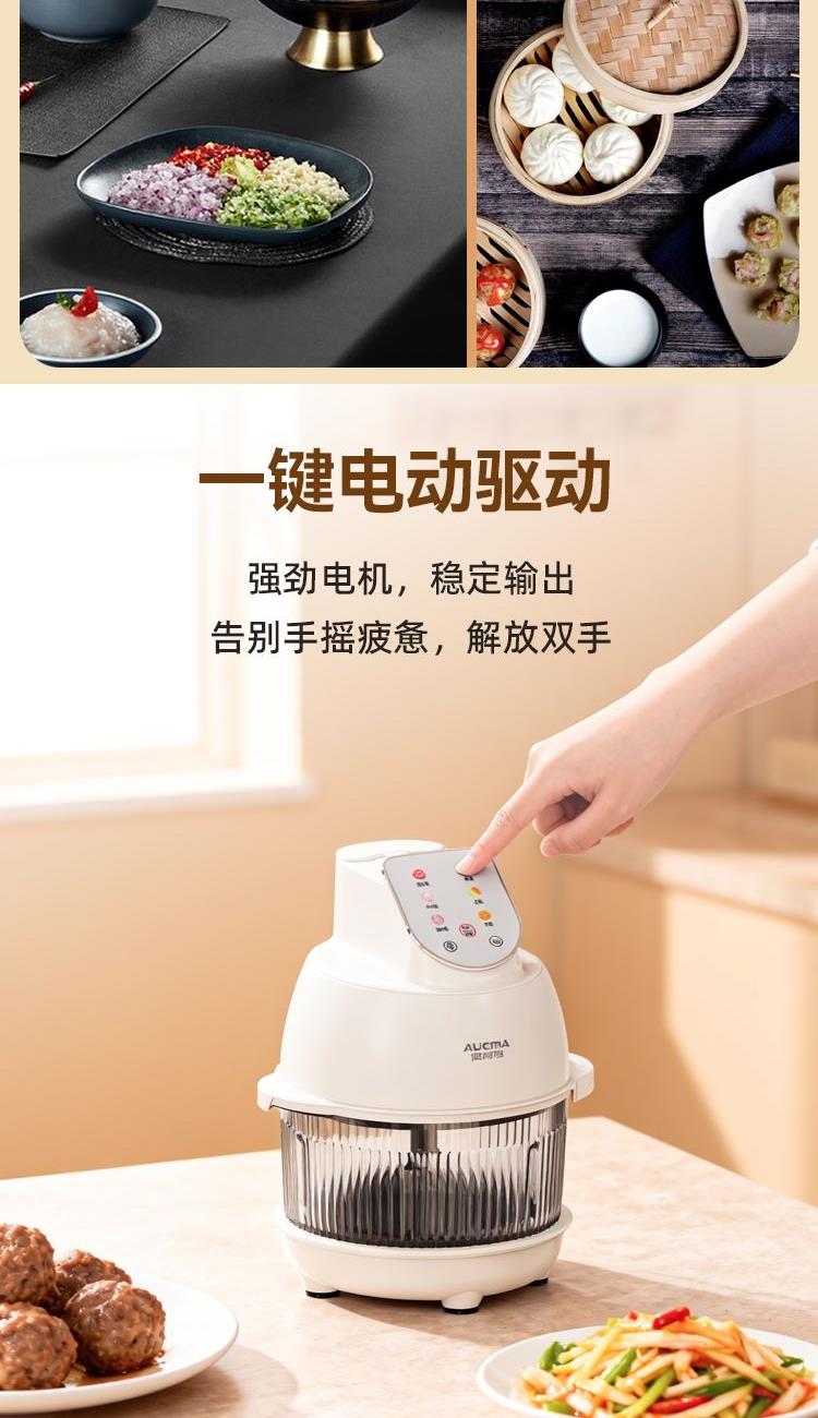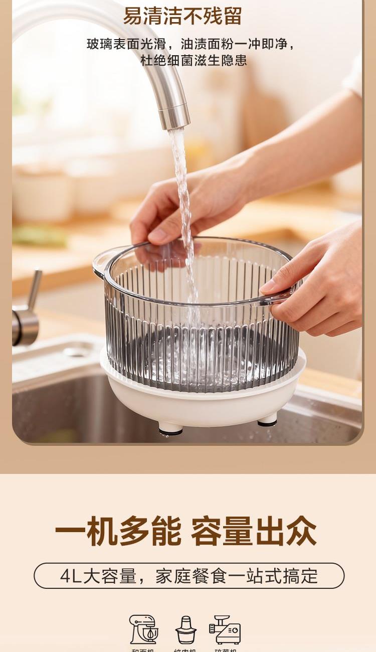 米白配色 + 雙刀組(和面、絞肉),顏值實(shí)用兼顧。