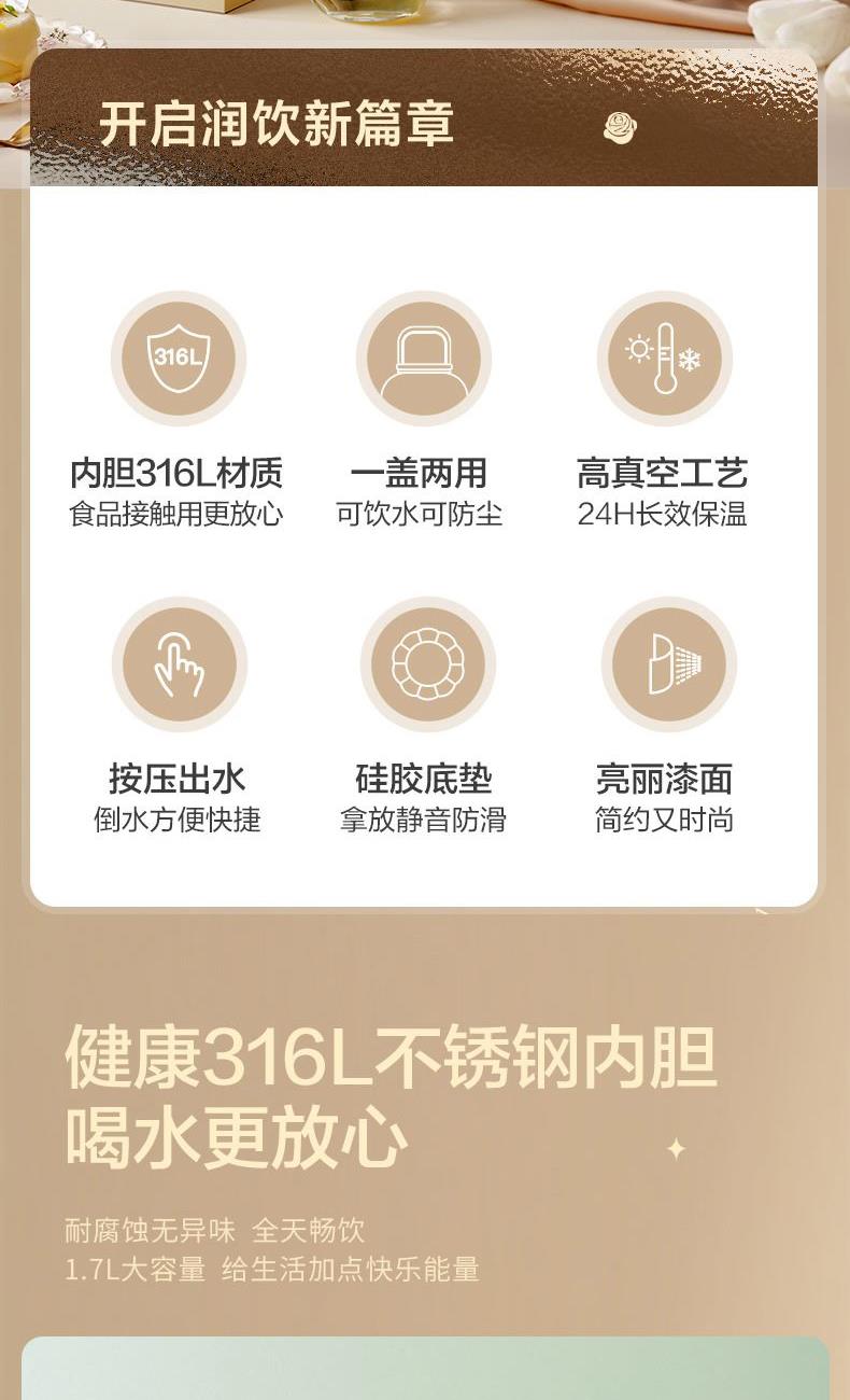1、內(nèi)膽316L材質(zhì),食品接觸用更放心。
