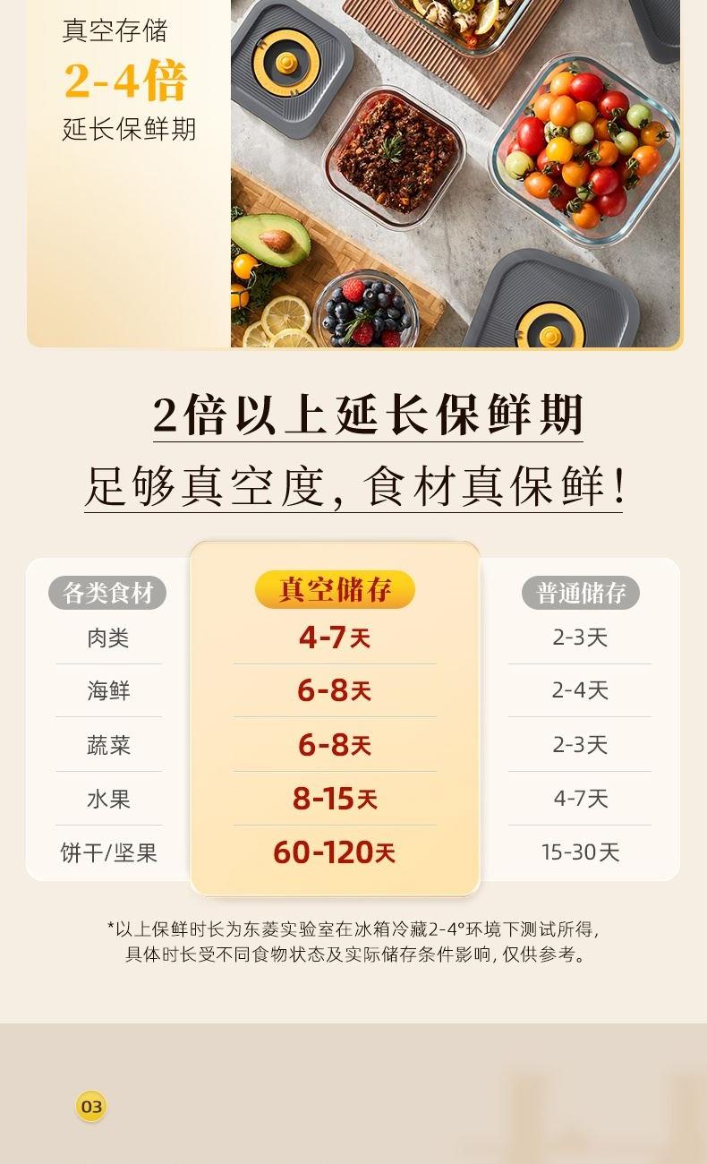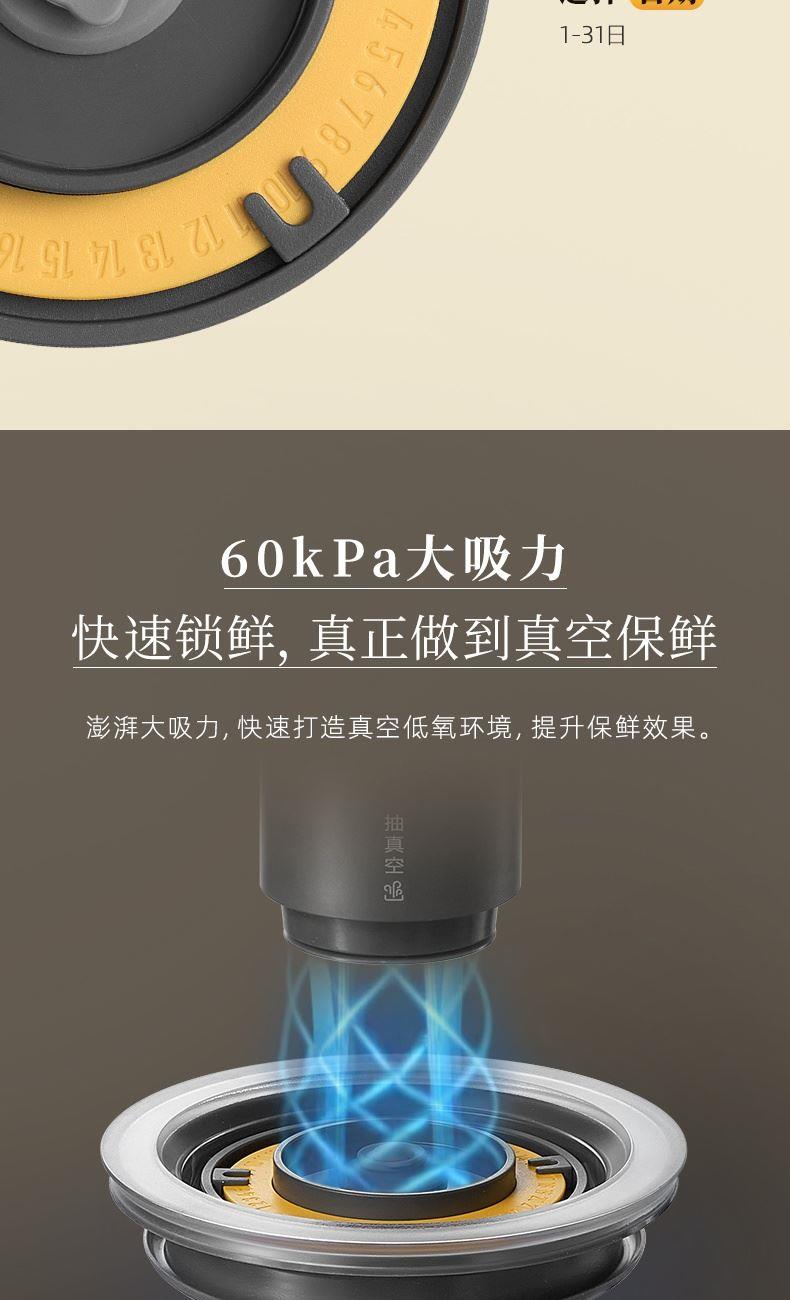 2.一鍵抽真空精 確保鮮,計時存儲更清晰
