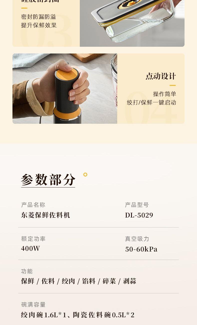東菱真空保鮮佐料機+1480ML抽真空玻璃保鮮盒家用備餐