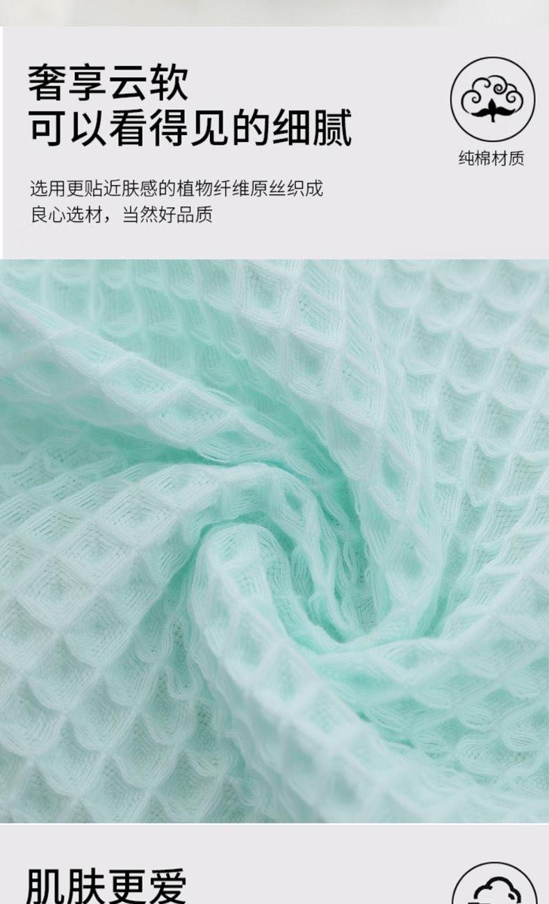 1、超強吸水性;華夫格獨特的中空編織結(jié)構(gòu),能快速鎖住水分,輕按就能帶走肌膚表面的水珠,告別濕噠噠的黏膩感。