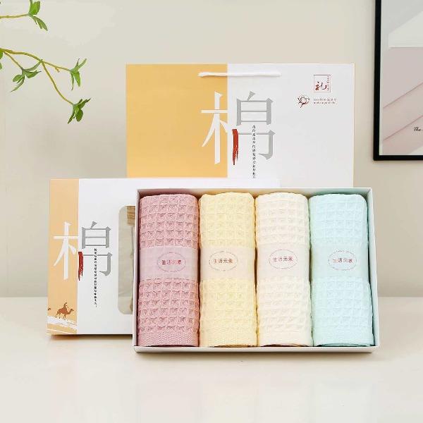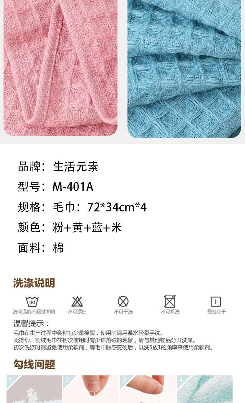 生活元素華夫格全棉毛巾四條裝M-401A(粉+黃+藍+灰)