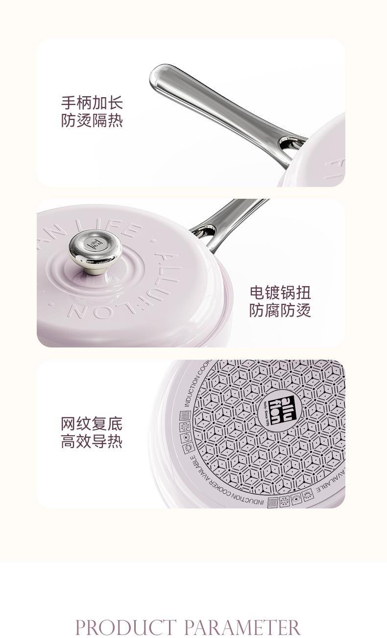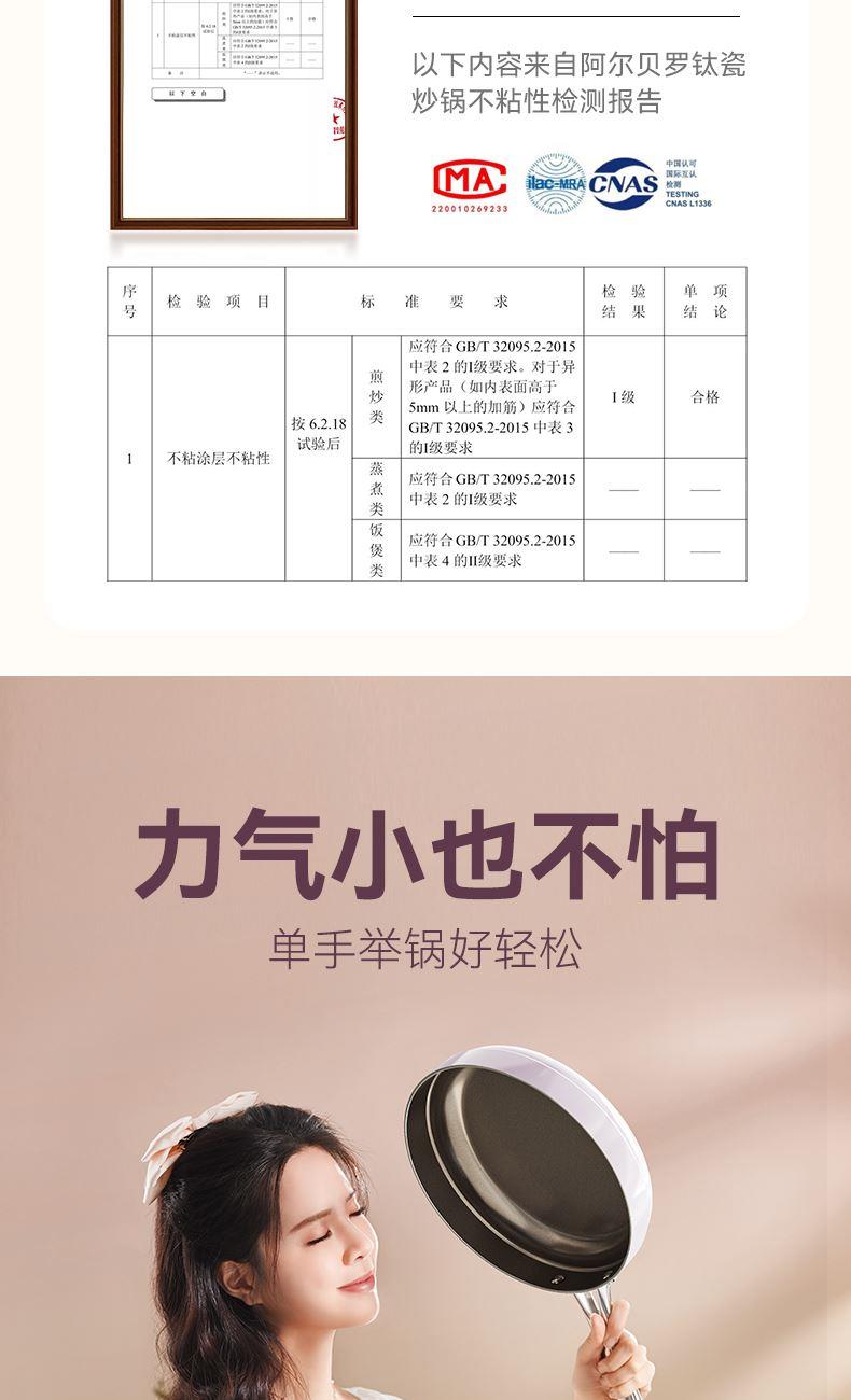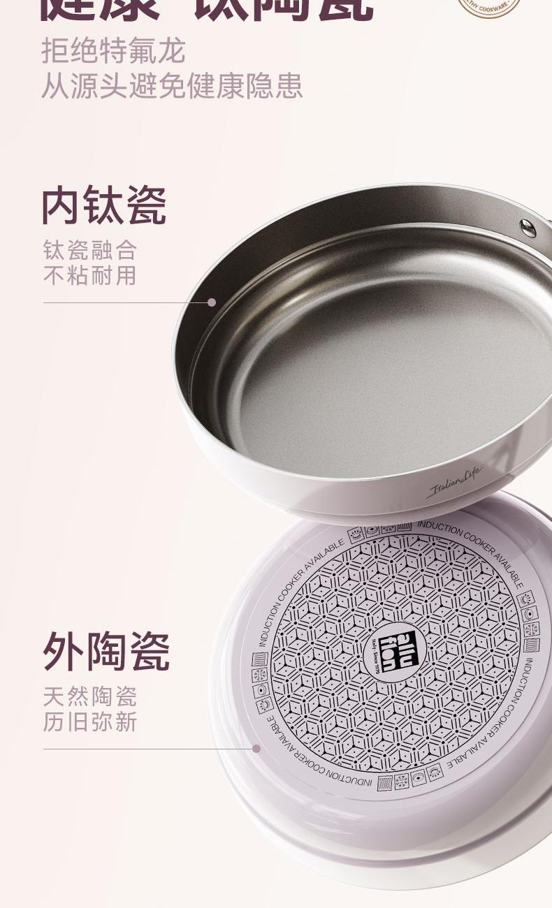 規(guī)格:26cm 材質(zhì):鋁合金+陶瓷 入箱:1個(gè)/箱 單個(gè)尺寸:482*322*105 1、國(guó)標(biāo)1級(jí)不粘,鈦不粘不糊底 2、鈦瓷革新材質(zhì),0氟0析出0涂層 3、9HV硬度,持久耐磨不粘 4、鍋體減重約18%,單手可顛 5、可進(jìn)洗碗機(jī),解放雙手。
