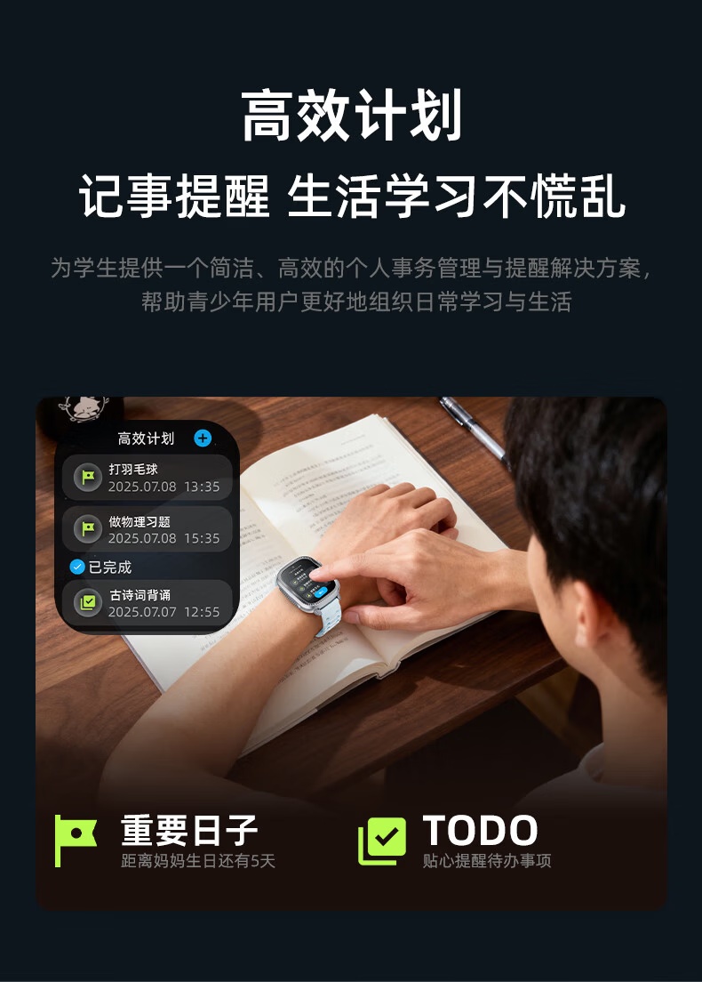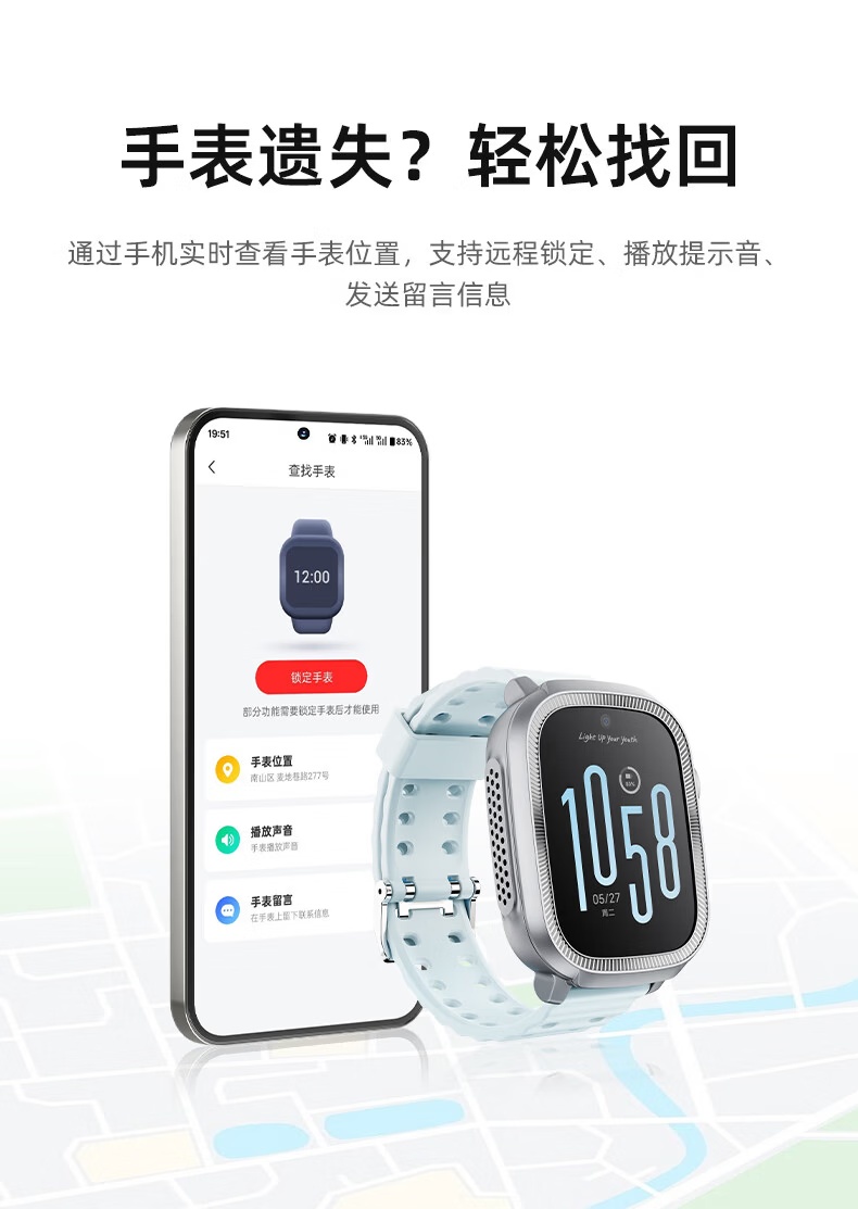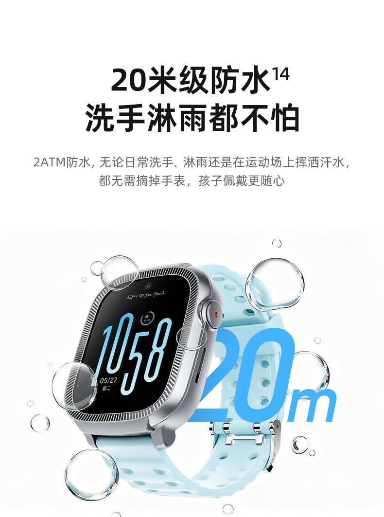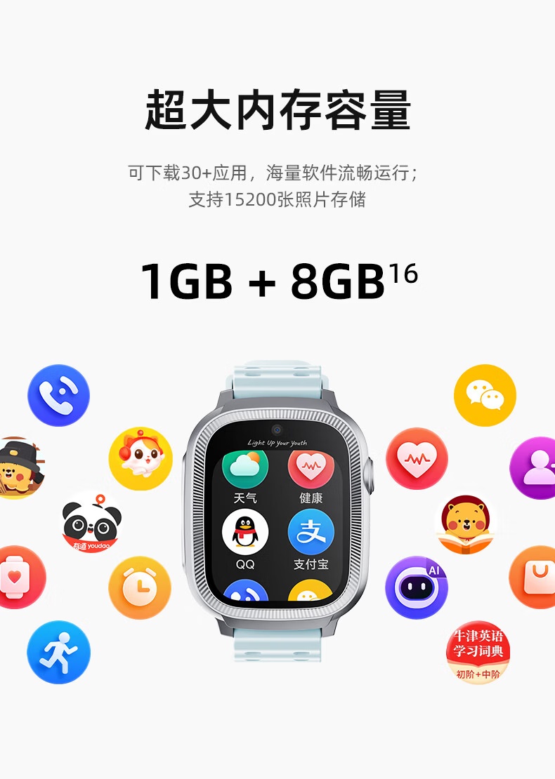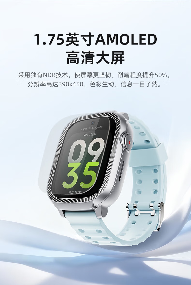 1、1.75英寸屏幕、500萬前置像素,8G內(nèi)存、4G全網(wǎng)通,IP68米級防水、800mAh大容量電池