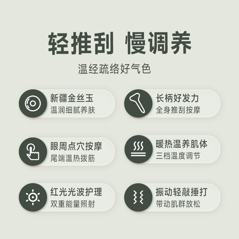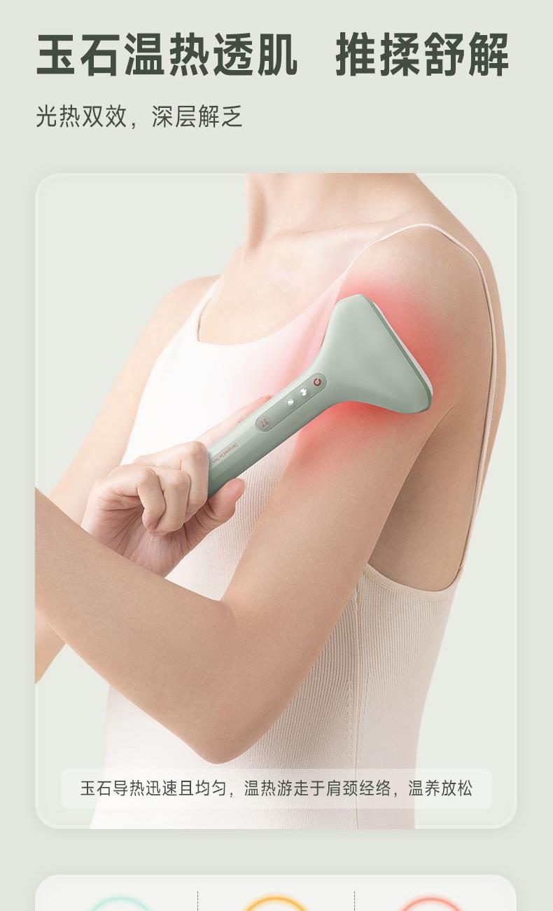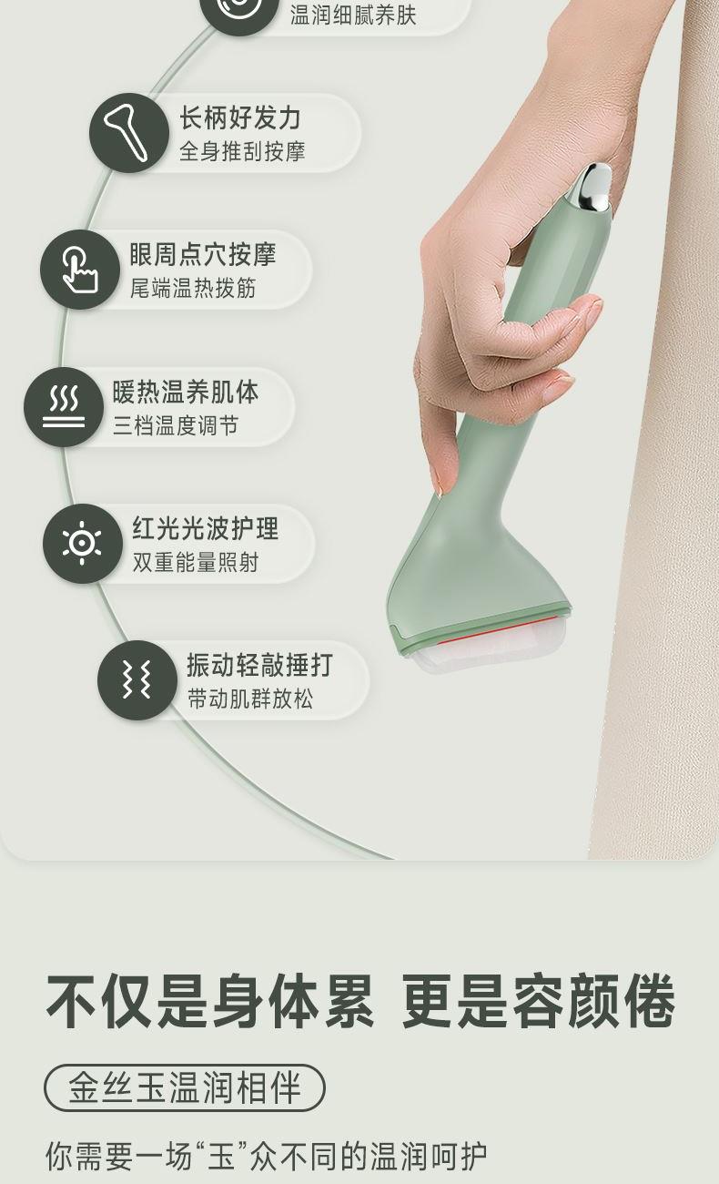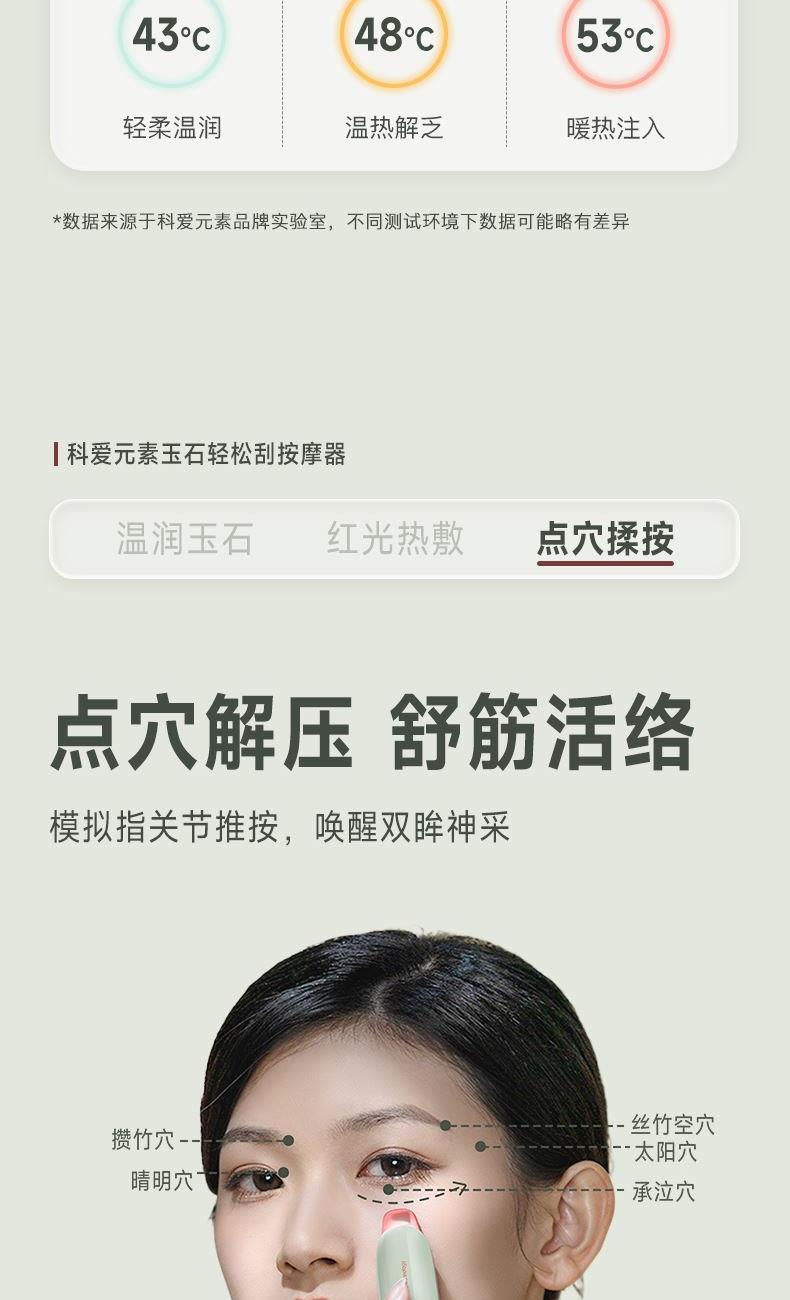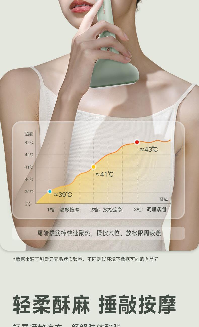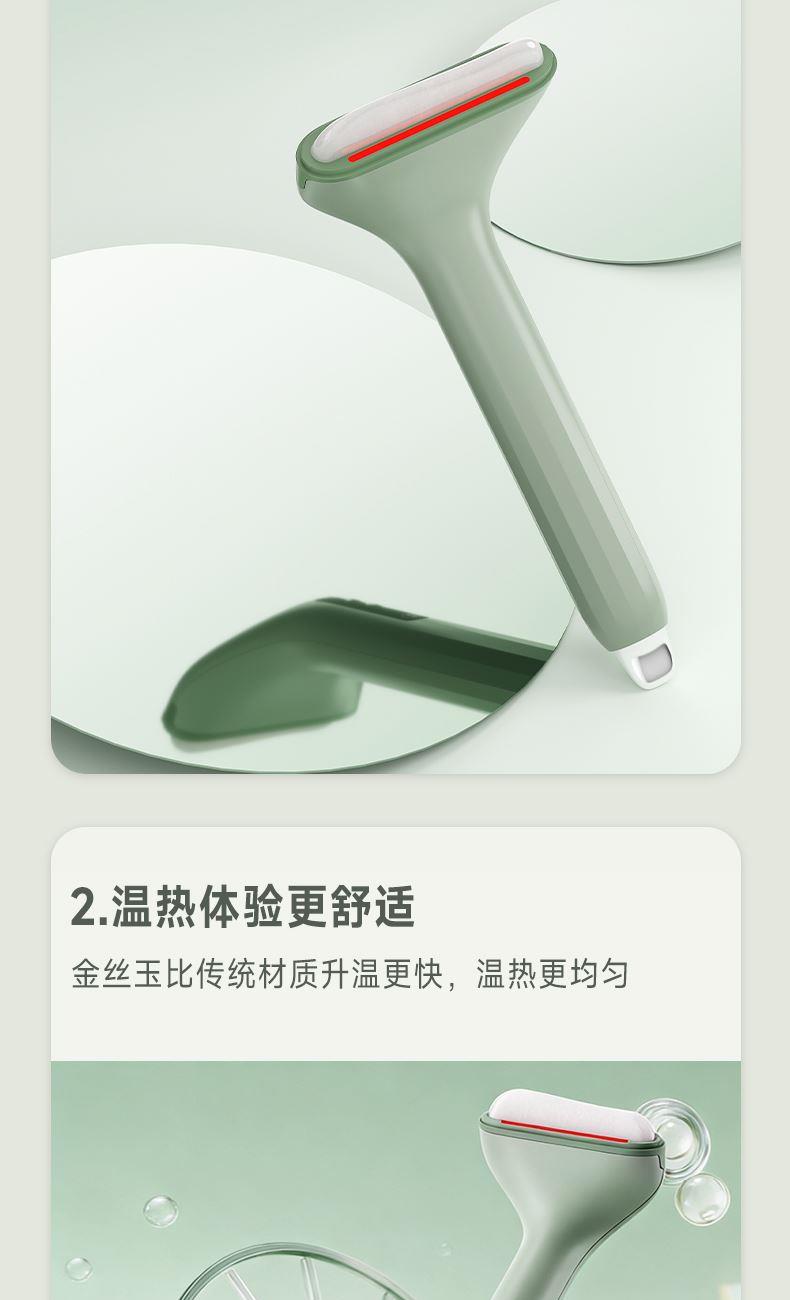 3、尾部設(shè)計是一個鋅合金撥筋棒也有三檔加熱(長按溫度鍵變?yōu)榘谉艨杉訜嵛膊浚╀\合金導(dǎo)熱更快,特別適合點按眉頭、眼下以及眼頭靠近鼻梁的位置,促進眼周的循環(huán)。