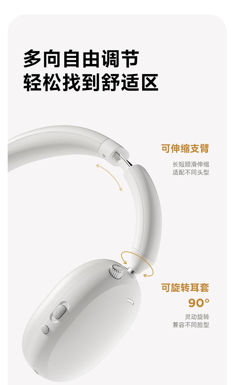 7.耳機可旋轉(zhuǎn)可折疊設(shè)計,小巧輕便,搭配旅行絨布袋輕松攜帶出行;