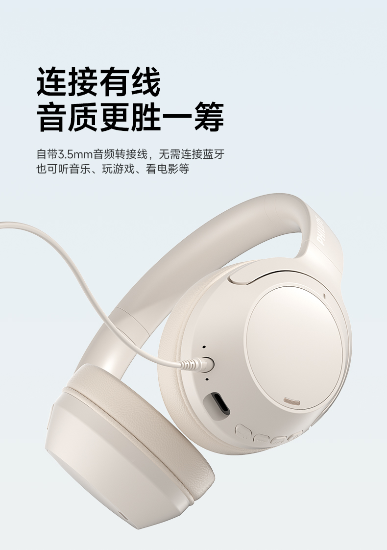 5.雙模式連接,自帶3.5mm接口和音頻線,即使耳機沒電仍然可以有線聆聽音樂;