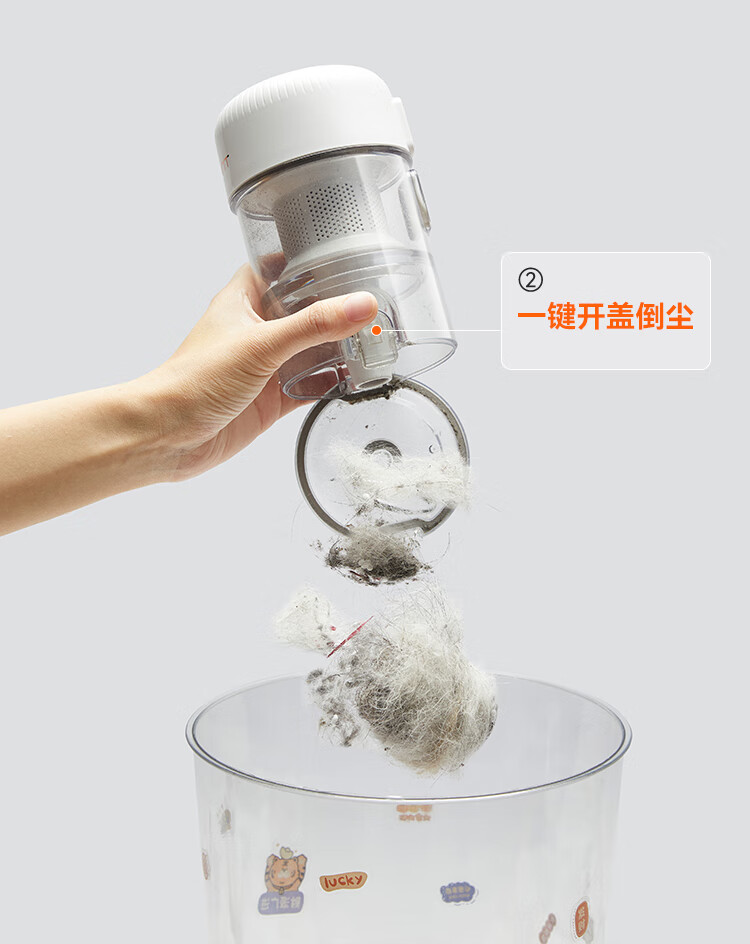 2.一鍵開蓋倒塵 單手可操作,除塵不臟手,輕松倒垃圾。