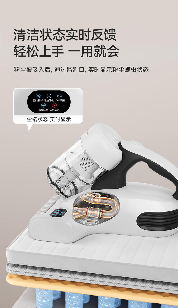 6.V型合金金屬拍打桿+36000次/min強力拍打,深層除螨7.紅藍標顯示屏,清潔狀態(tài)實時反饋,清潔效果可視。小巧輕量化設(shè)計,久用也不累