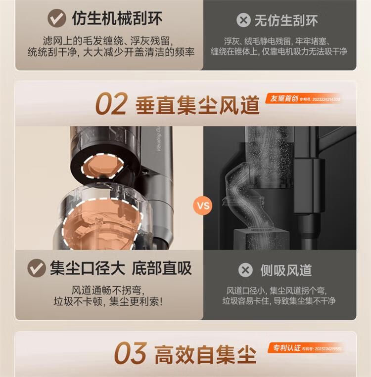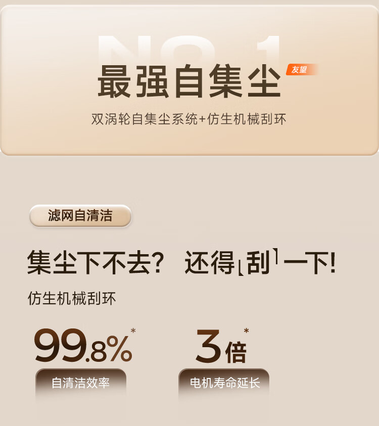 1.雙渦輪集塵系統(tǒng)+仿生機(jī)械刮環(huán)