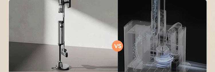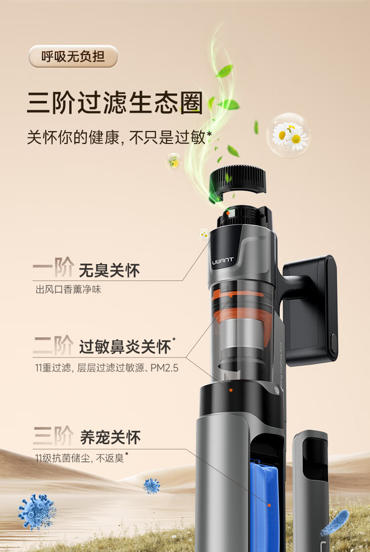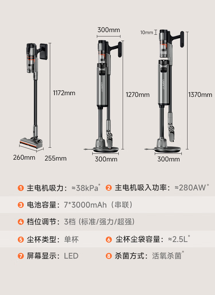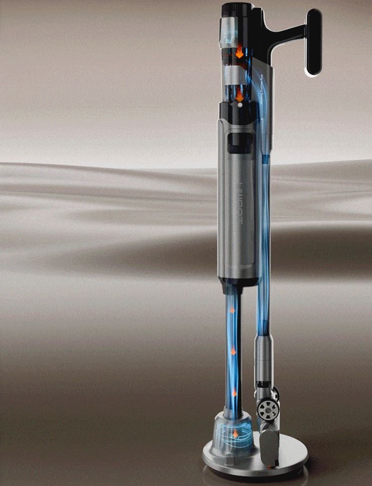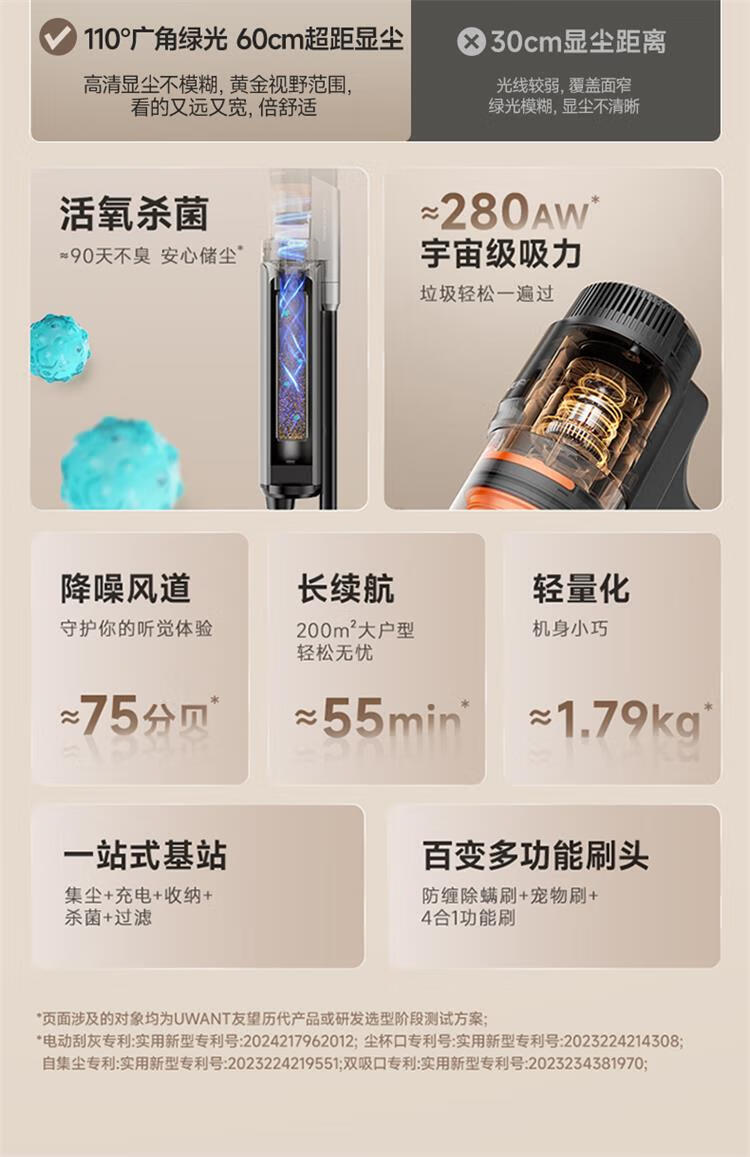 2.基站(收納+充電+集塵三合一),自動倒灰,不用手動清理塵盒。