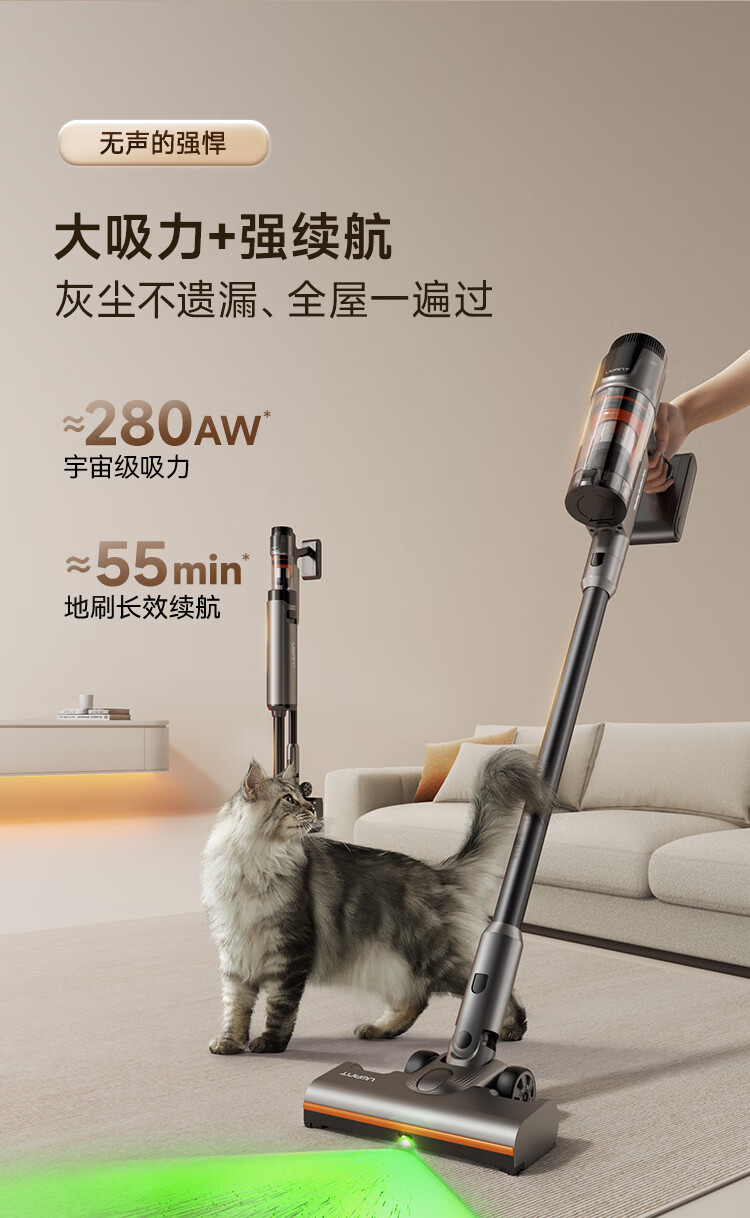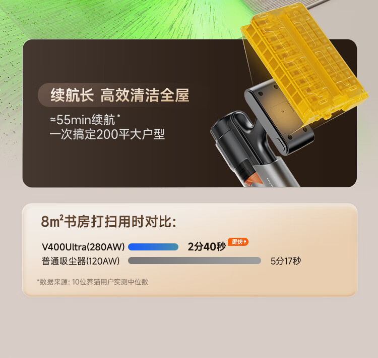 4.400W大吸力、高續(xù)航、貼邊清潔