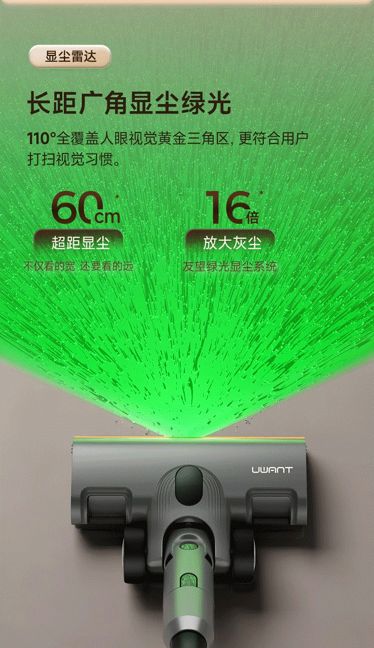 3.110°廣角綠光,無懼死角,干凈看得見;雙吸口不纏頭發(fā)。