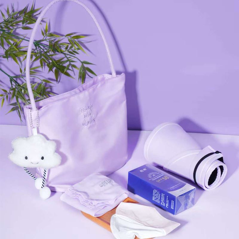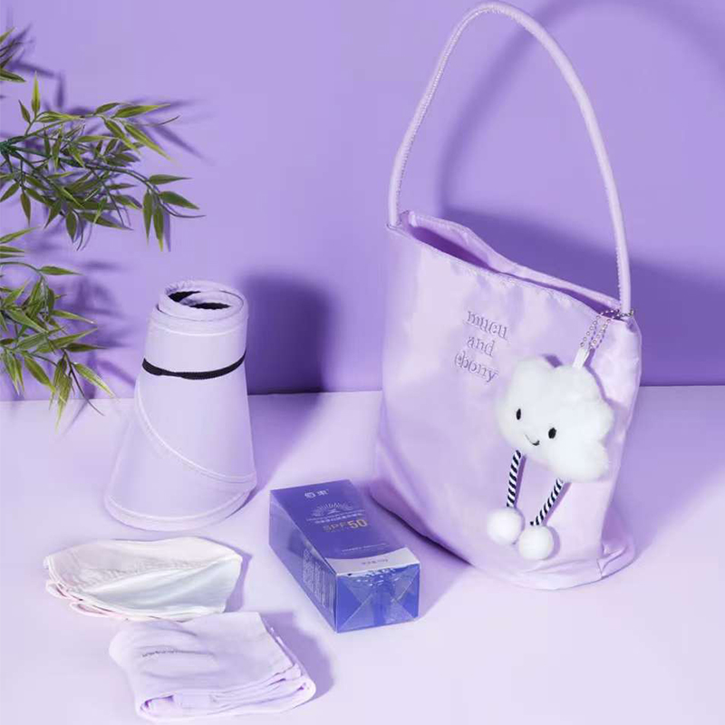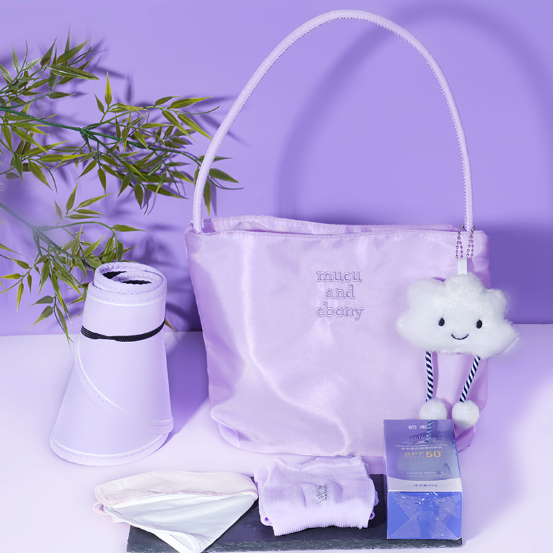 4、絕絕紫同色系搭配套裝,更懂女生更懂愛(ài)!托特包裝全防曬好物,拎包即走,精致感拉滿(mǎn),自用、送禮都適合。