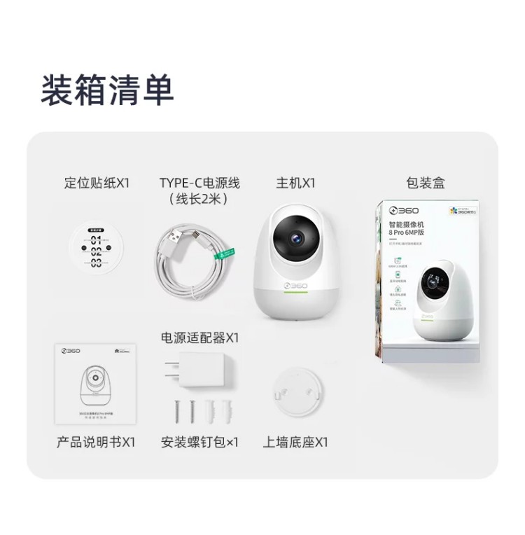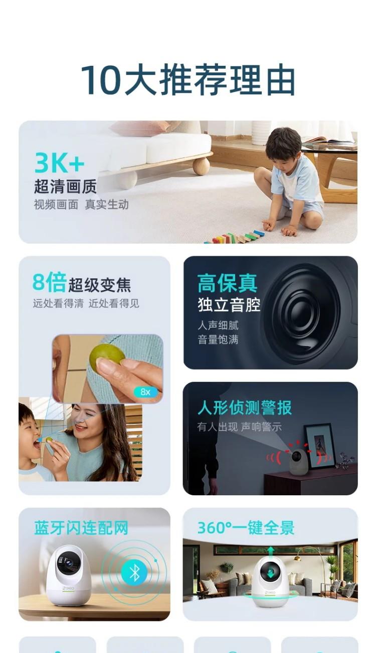 360攝像頭8Pro6MP版600萬像素人形移動偵測回看