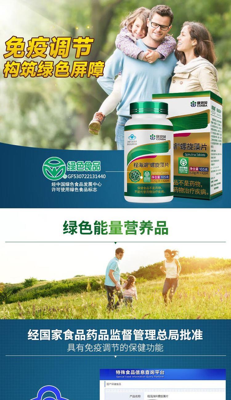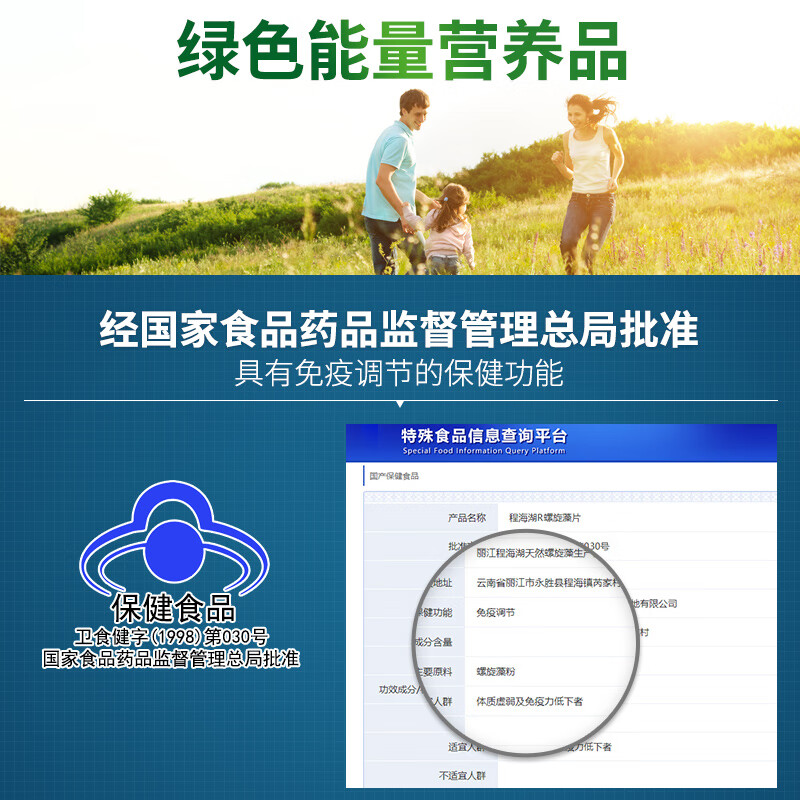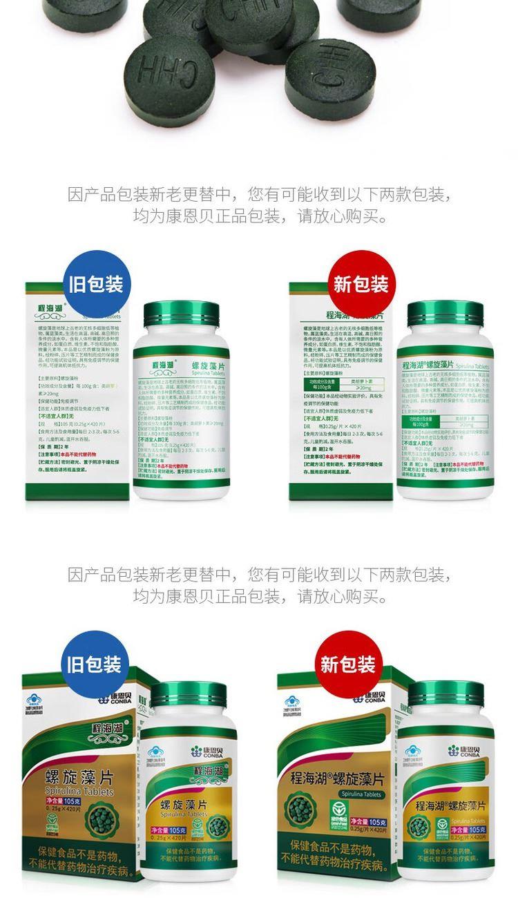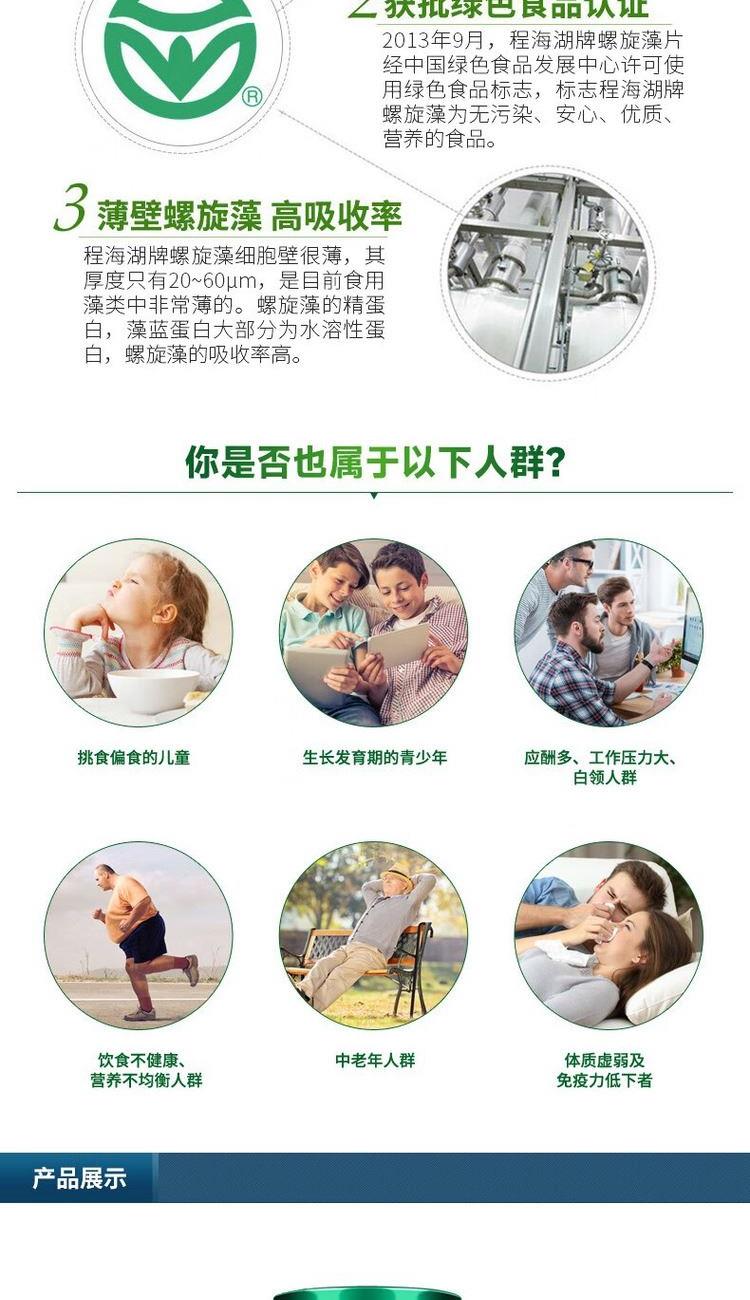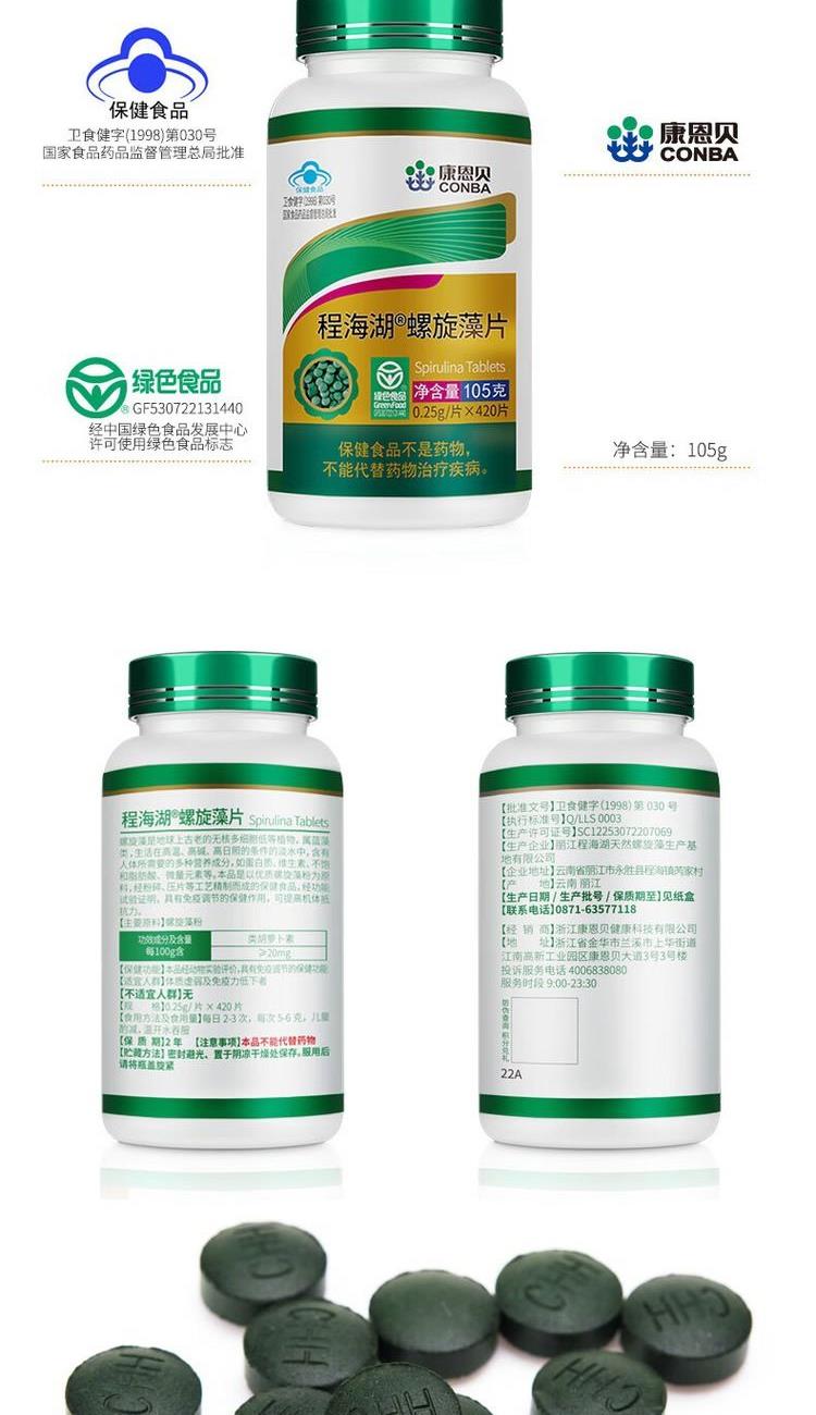 0.25g/片*420片 選用麗江程海湖自然繁殖的鈍頂螺旋藻 程海湖牌螺旋藻片為綠色食品 螺旋藻的吸收率為90%以上