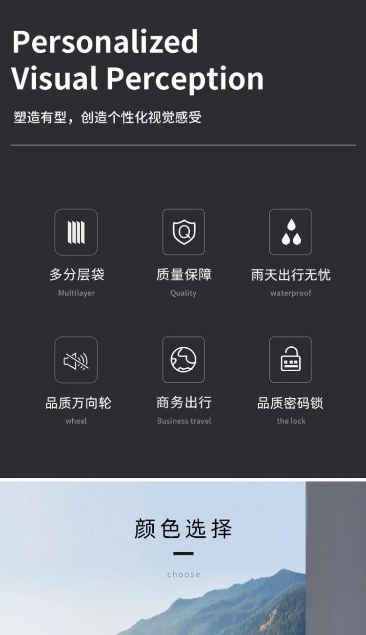 賣點(diǎn):簡(jiǎn)約格調(diào),輕松收納,暢快出行;