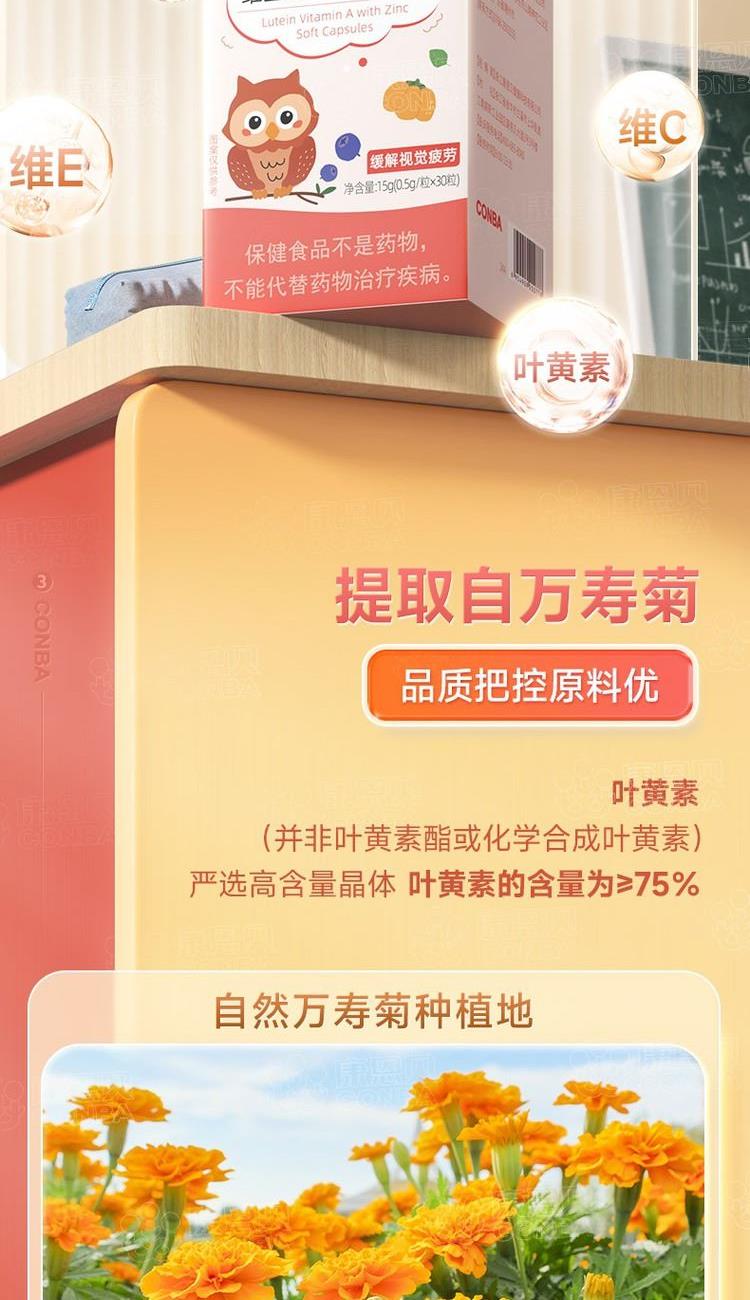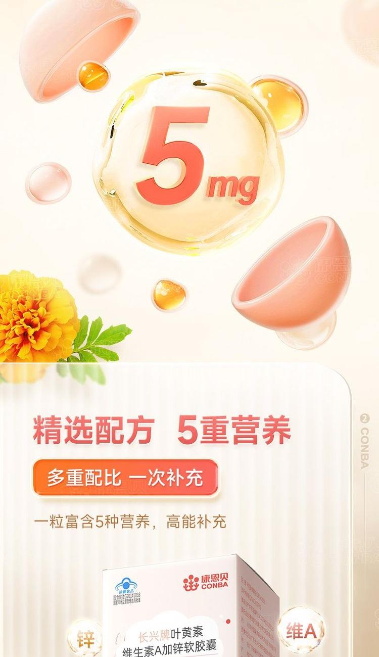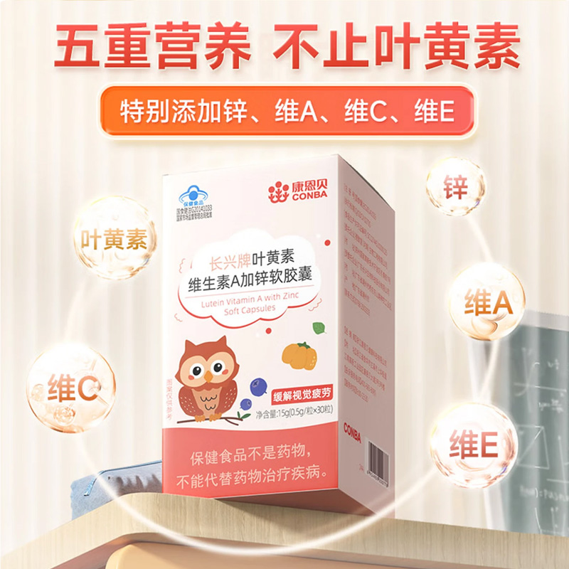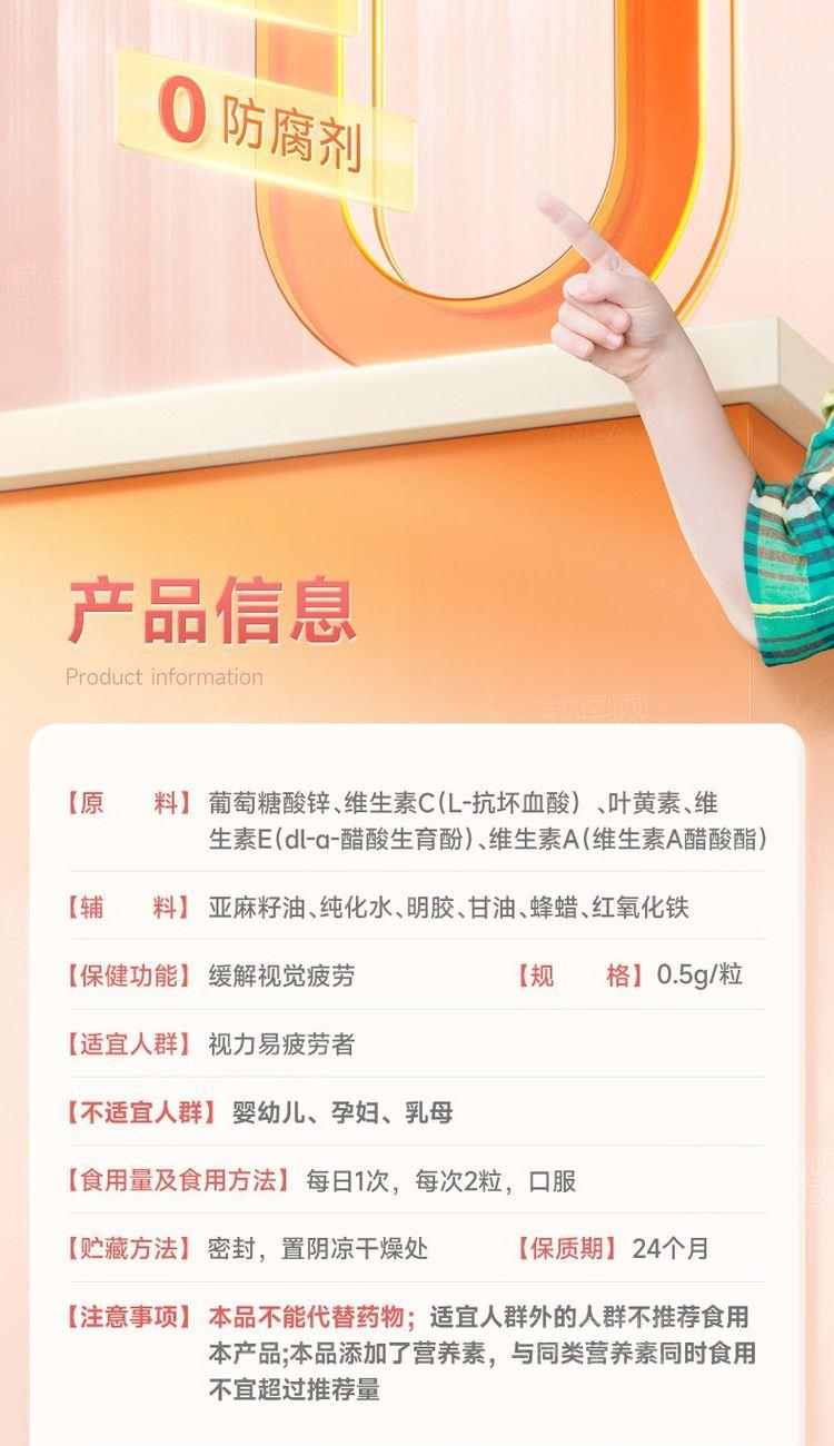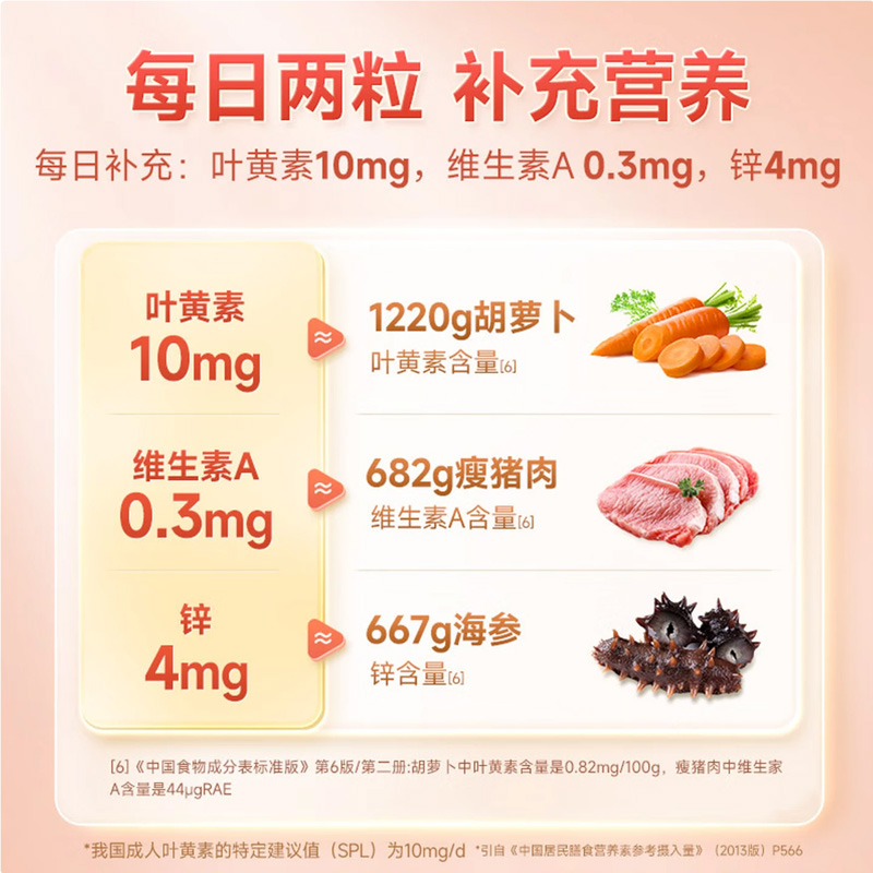 0.5g/粒*30粒 精選優(yōu)質(zhì)游離型葉黃素 小分子好吸收 一粒富含5種營養(yǎng),高能補充 無色素、香精、防腐劑添加