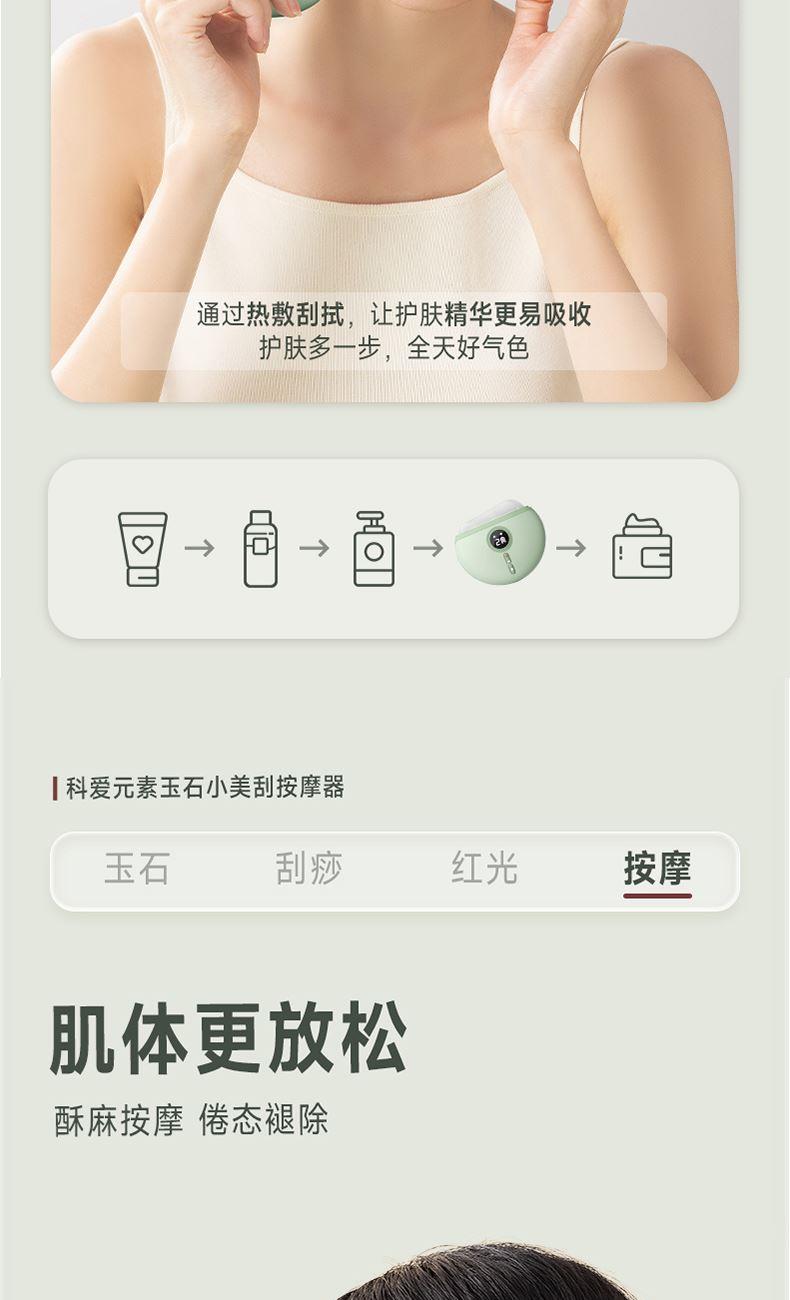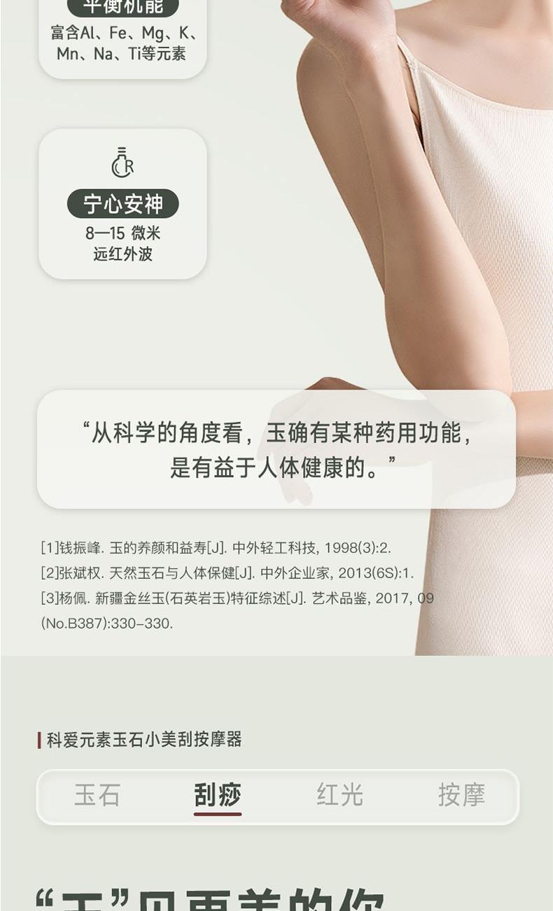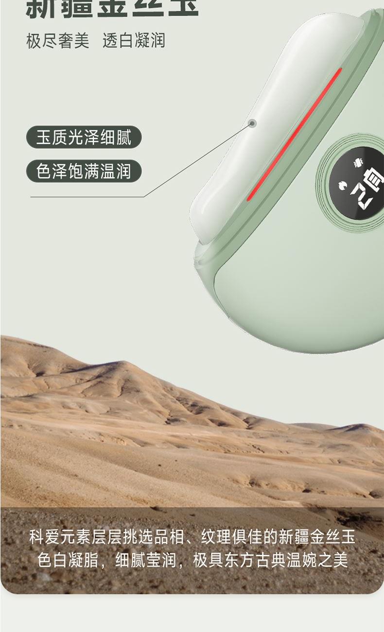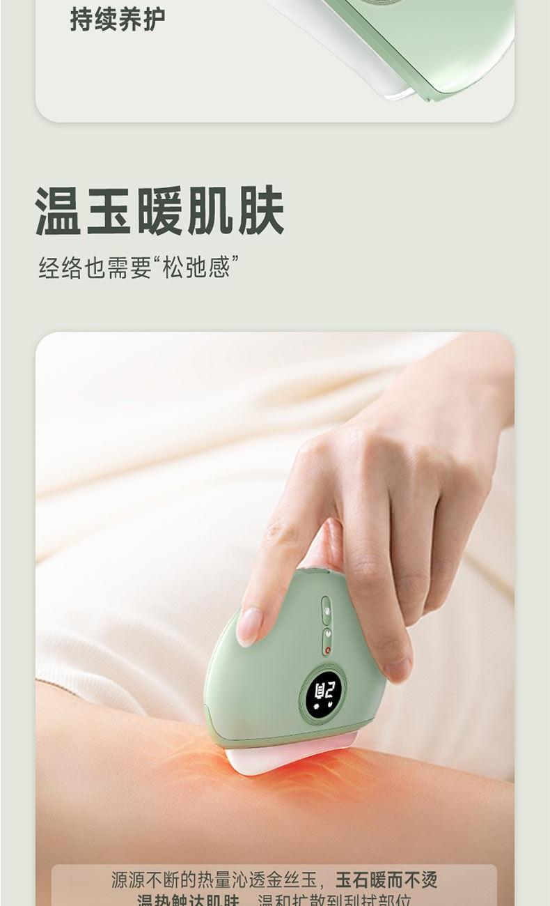 產(chǎn)品功能:金絲玉材質(zhì),富含多種有益等元素,8-15微米遠(yuǎn)紅外波;3檔熱敷+紅光+震動(dòng),調(diào)節(jié)經(jīng)絡(luò)氣血;山型設(shè)計(jì),玉石刮板,貼合眼部、臉部等部位;無(wú)線設(shè)計(jì),長(zhǎng)續(xù)航大電池,充一次用一周