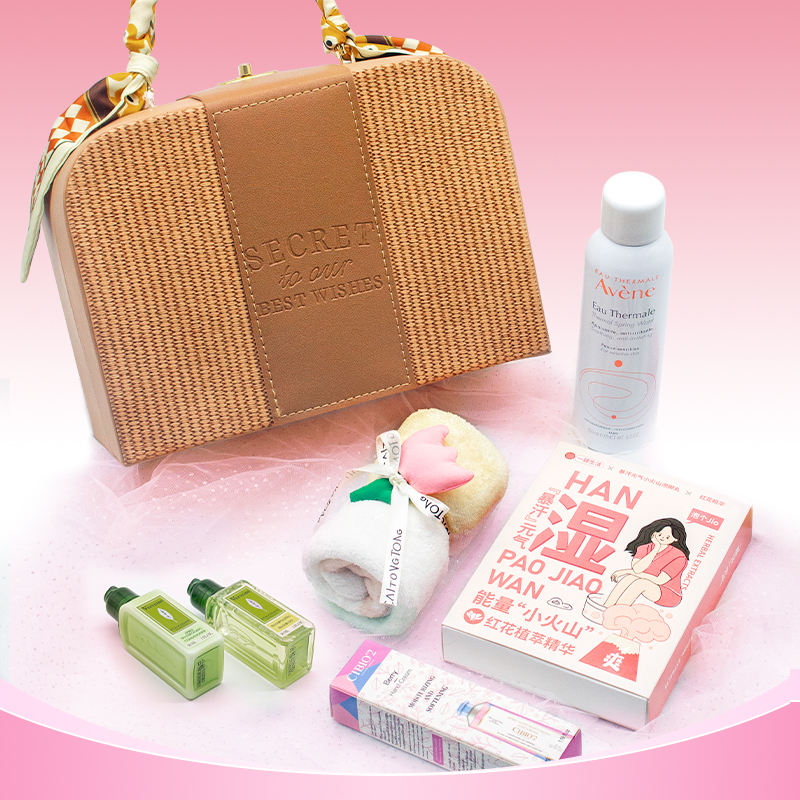 禮盒尺寸:26*19*11cm 雅漾噴霧150ml CIBIO2護手霜35ml 元氣泡腳丸12顆 郁金香毛巾6*11cm 歐舒丹洗發(fā)水護發(fā)素各30ml 絲巾綁帶(顏色隨機)