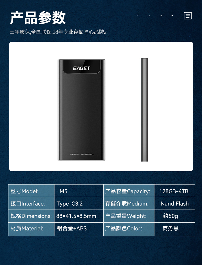 (EAGET)憶捷M5固態(tài)ssd移動(dòng)硬盤(pán)便攜迷你1TB