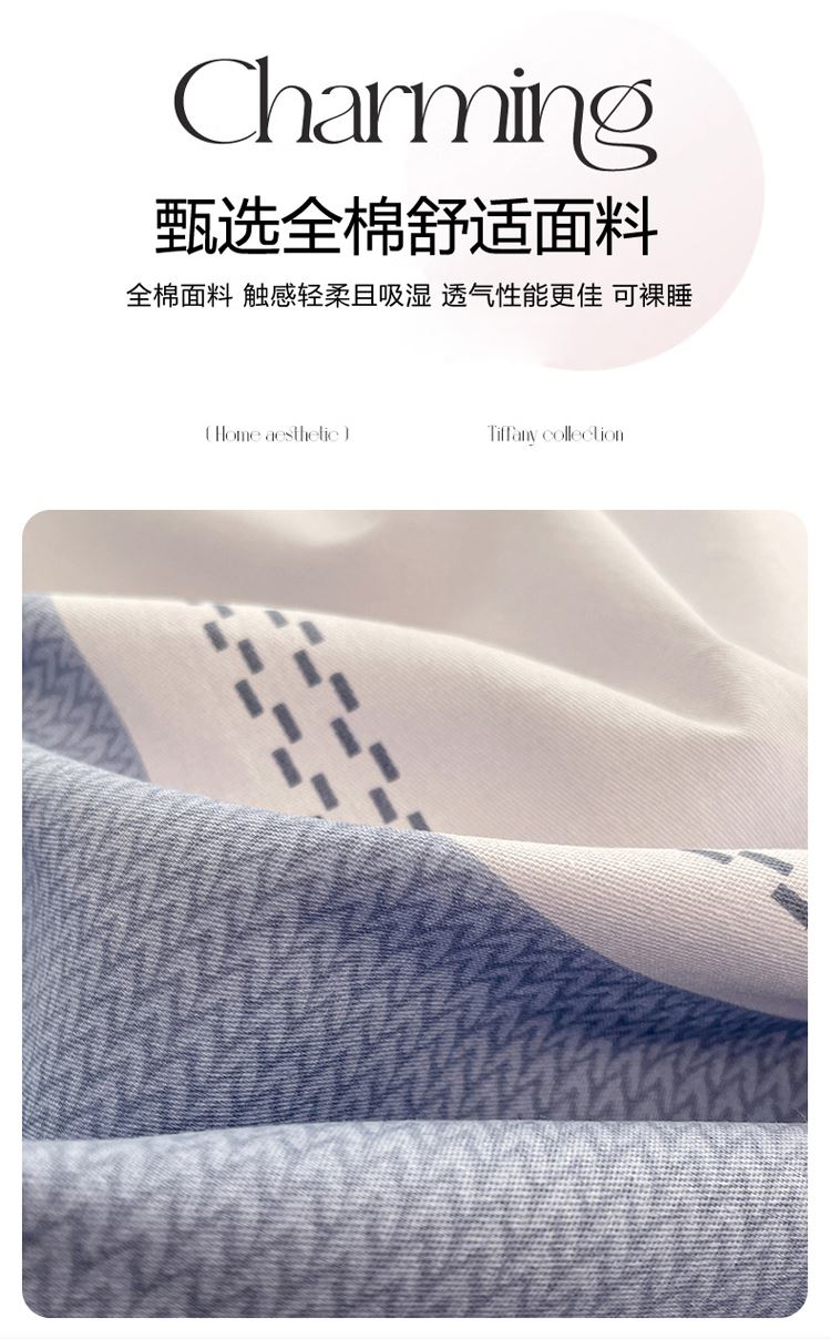 品 名:CP1582海納百川 規(guī) 格:1.5米/1.8米床通用 被 套:200*230cm 床 單:230*230cm 枕 套:48*74cm*2 克 重:1.86kg 面 料:全棉 40S