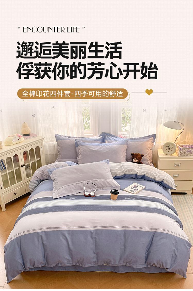 潔麗雅純棉四件套床上用品被套200*230cm-海納百川