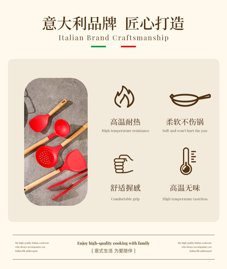 Alluflon阿路弗侖熱那亞硅膠鏟勺五件套