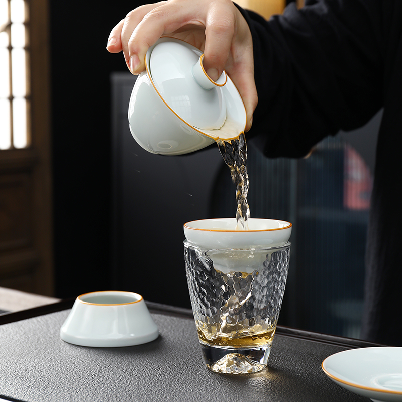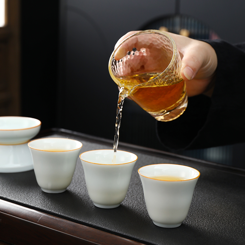 蓋碗1:寬11cm*高8.8cm 130ml 茶海1:寬8.8cm*高8.9cm 180ml 茶漏1:寬7.7cm*高5cm 茶杯1:寬5.7cm*高5cm 55ml 原礦瓷土,高溫?zé)?,多道工序人工打磨專注精品?高純度釉水,高溫?zé)?,影青顏色如?mèng)如幻。 觸感柔滑細(xì)膩,溫潤(rùn)如玉,雅致耐看。 禮盒簡(jiǎn)約大氣,送禮佳品。