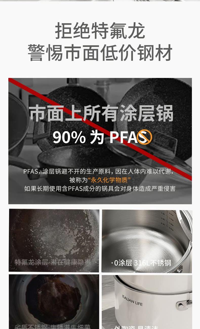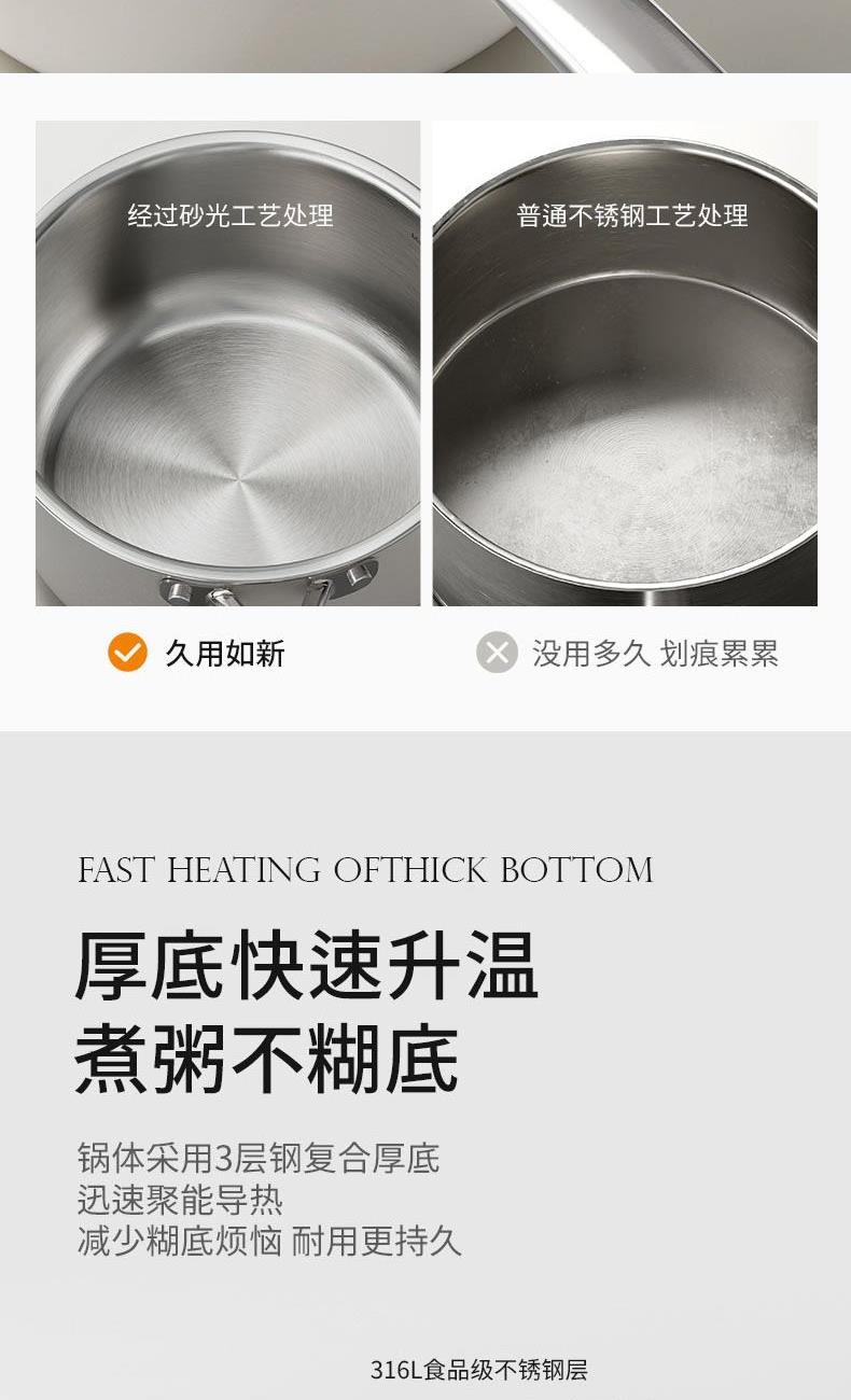 規(guī)格:18cm 材質(zhì):復(fù)合鋼 單個(gè)尺寸:390X250X148 1、0涂層脫落,0氟更健康 2、內(nèi)316L不銹鋼外天然陶瓷,純凈健康 3、外陶瓷釉面,不留劃痕 4、內(nèi)里砂光工藝,強(qiáng)度更高耐磨 5、3層鋼復(fù)合鍋底,不糊底 6、鍋身加高,不懼沸騰溢鍋。