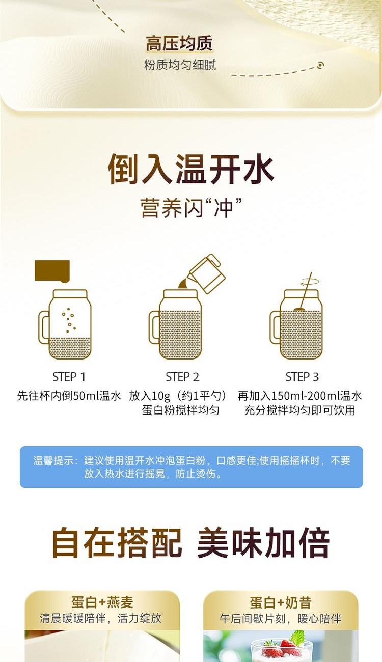400g/罐*2(80%) 新西蘭進(jìn)口乳清蛋白、大豆分離蛋白 蛋白質(zhì)含量高達(dá)80% 0添加輔料/色素/香精/防腐劑 粉質(zhì)細(xì)膩 易沖泡 助力中老年人吸收