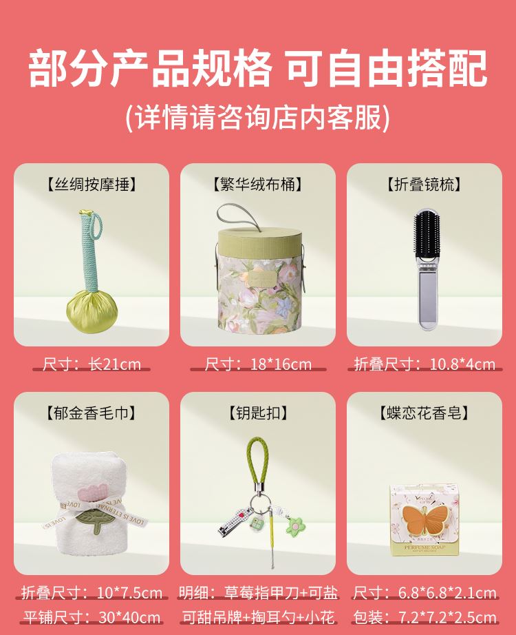 編碼:DAL1113 內(nèi)配:郁金香毛巾+手持折疊鏡+洗發(fā)梳 注:產(chǎn)品報價只對應(yīng)主圖款,詳情頁其他款報價請具體聯(lián)系