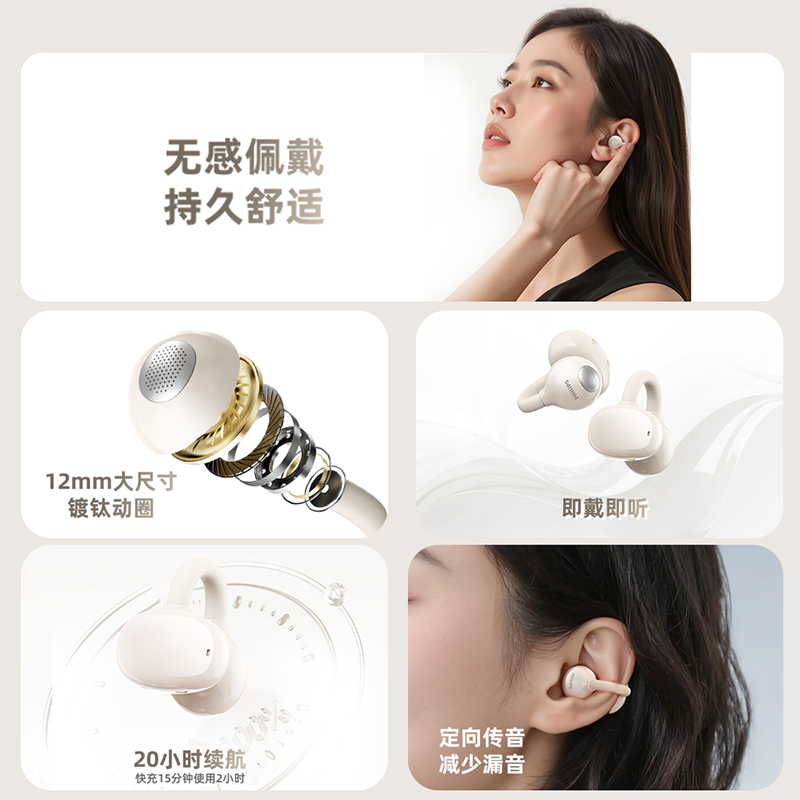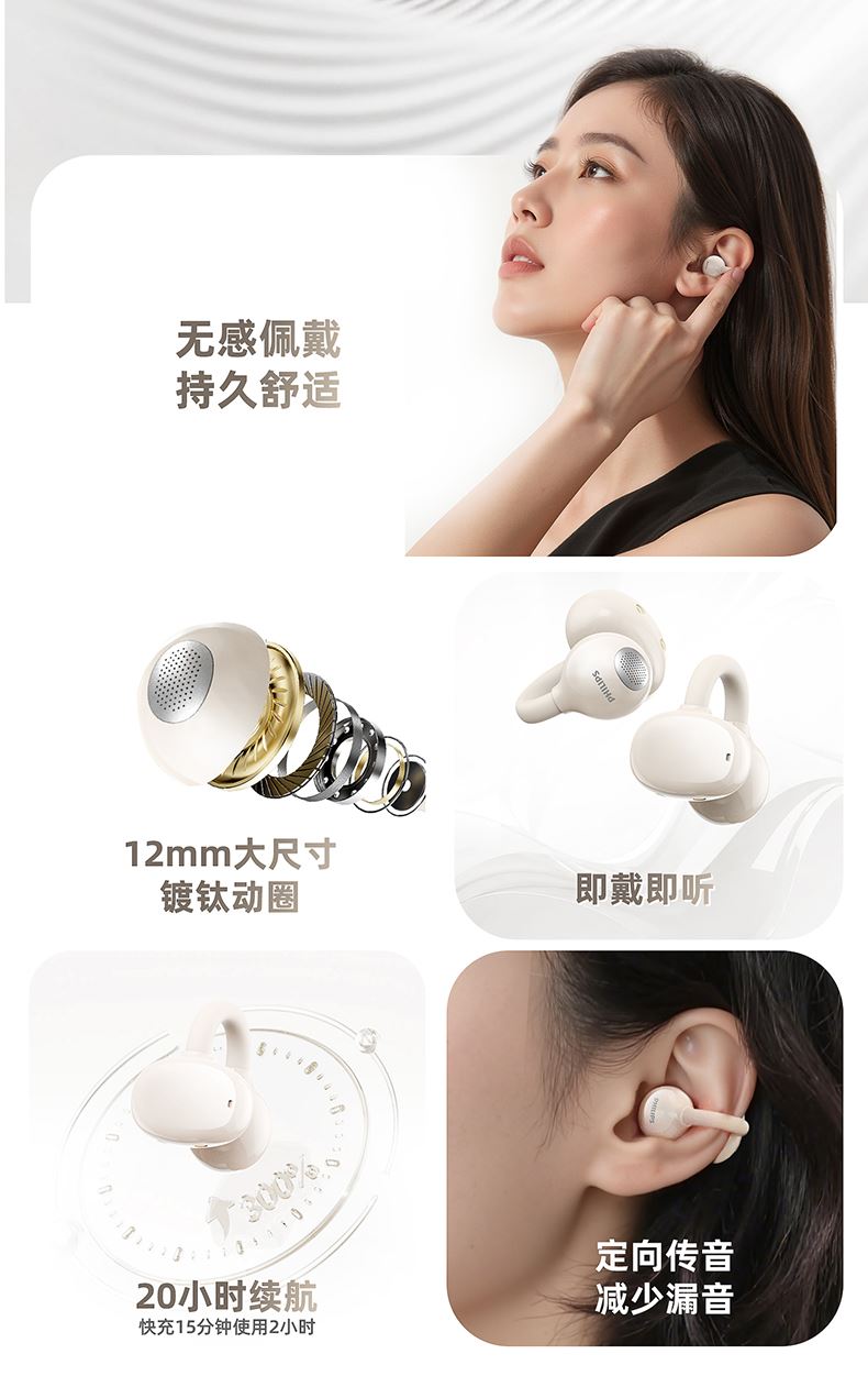 1.空氣耳骨結構,輕感支撐,自適應貼合;