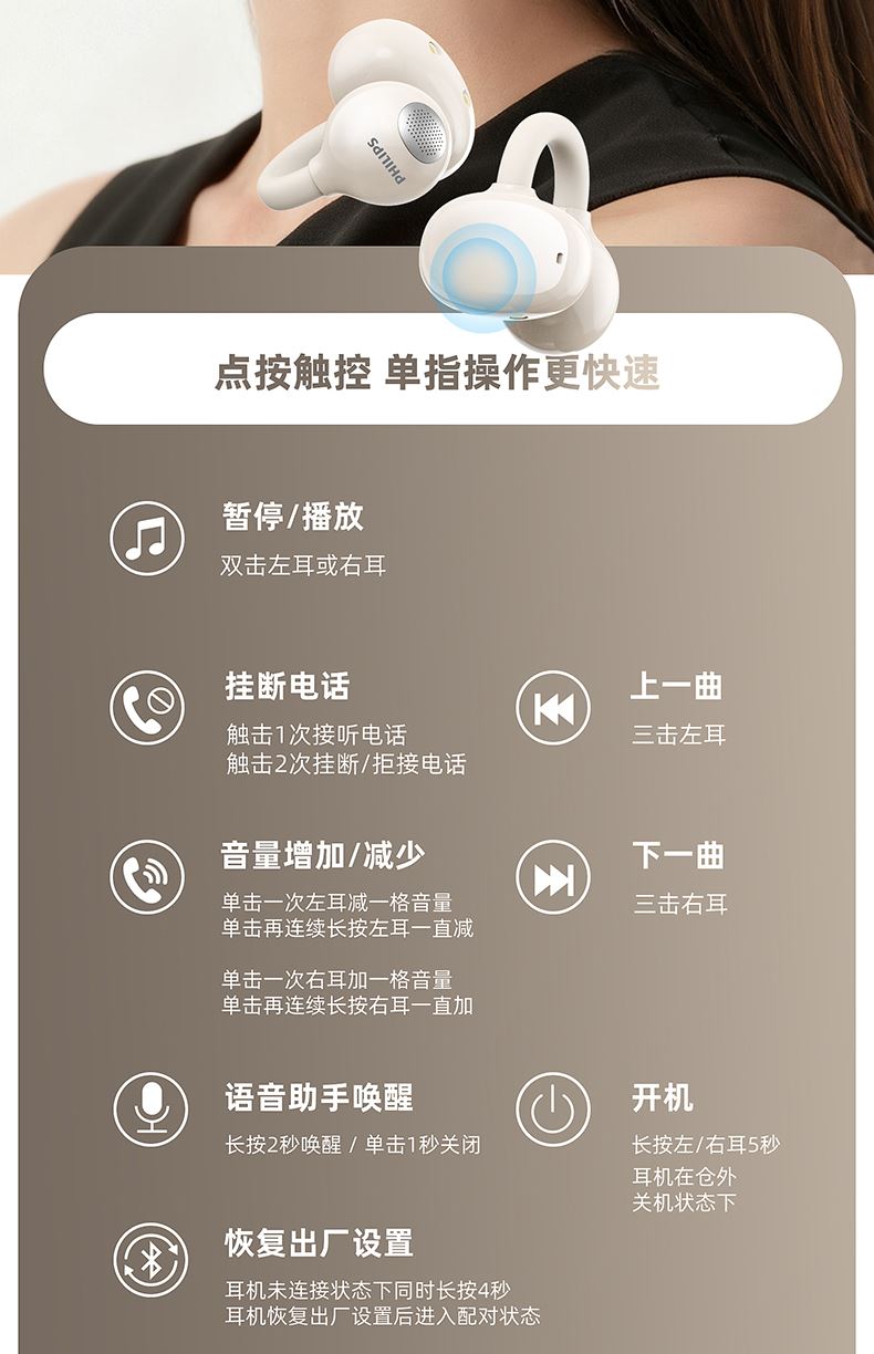 飛利浦(PHILIPS)耳夾式藍牙耳機TAQ2320