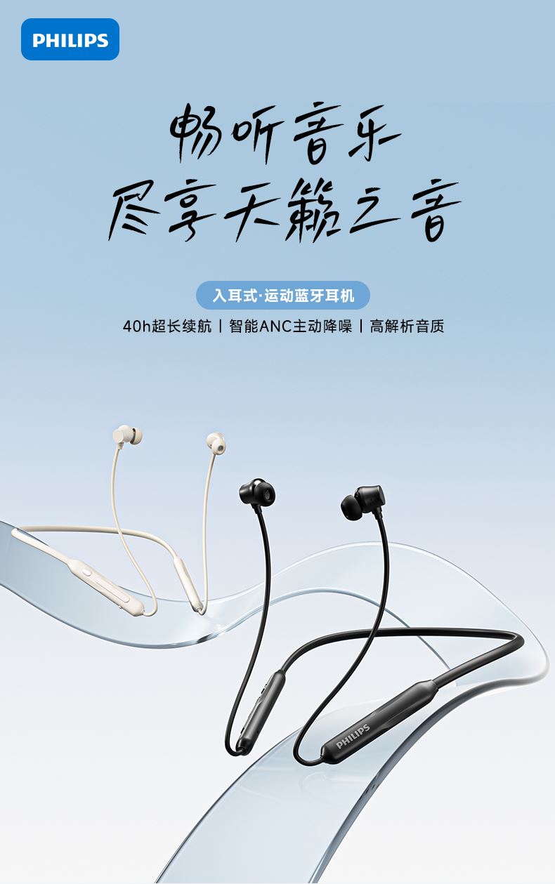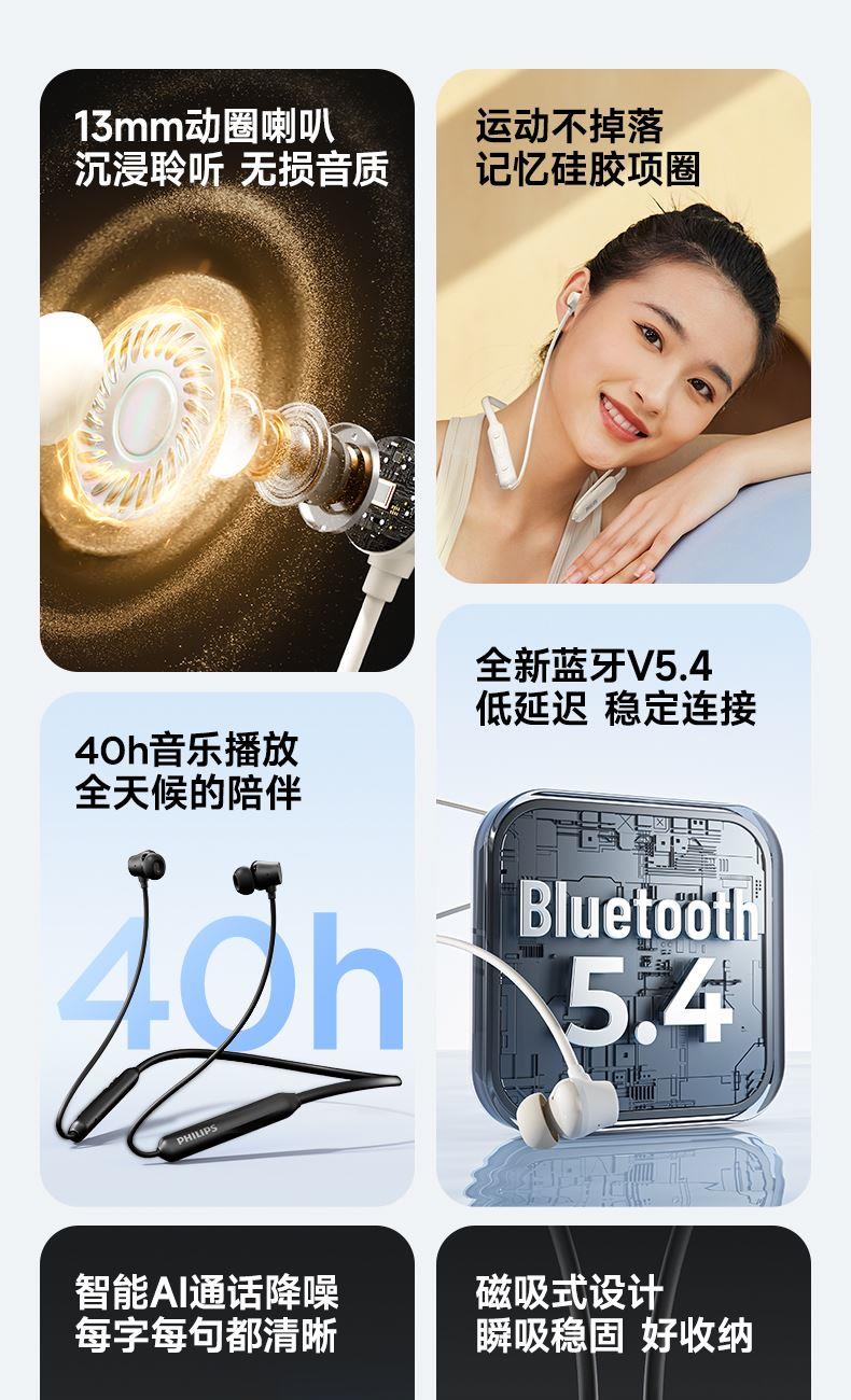 飛利浦磁吸掛脖式無(wú)線藍(lán)牙耳機(jī)TAN2020