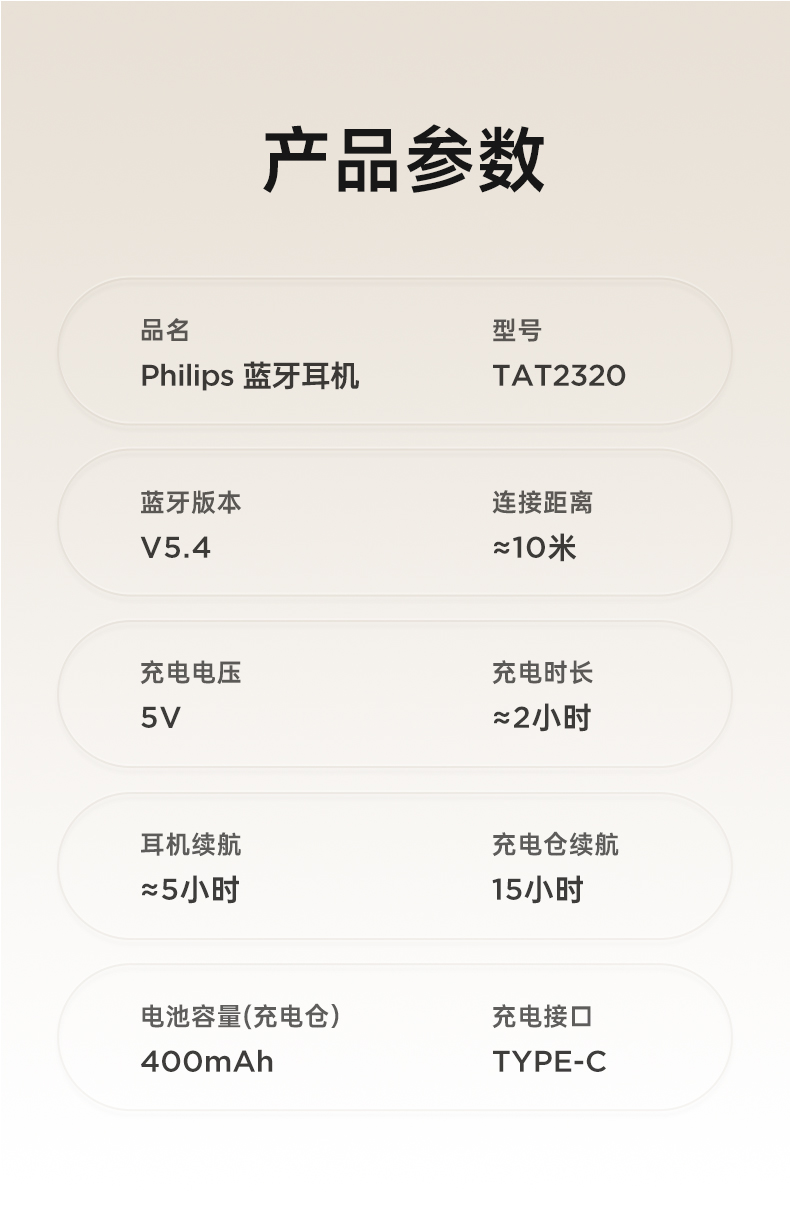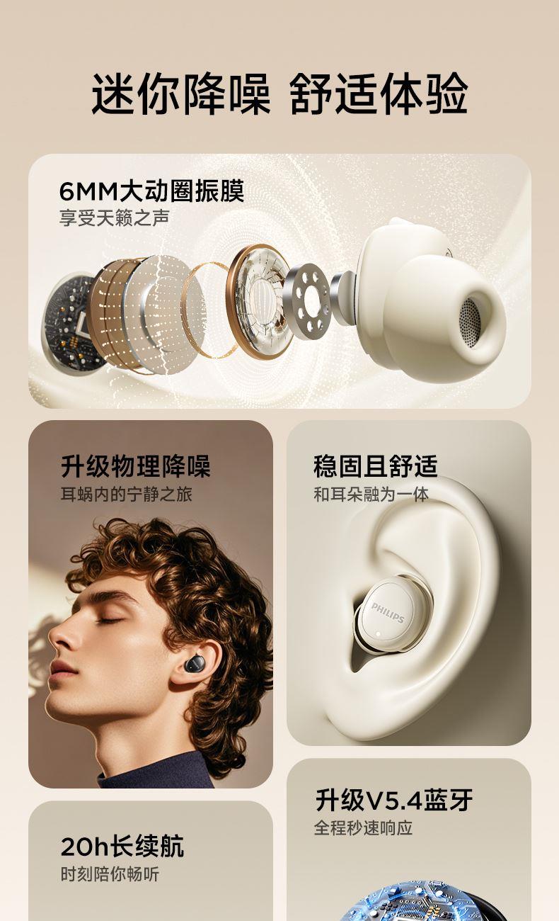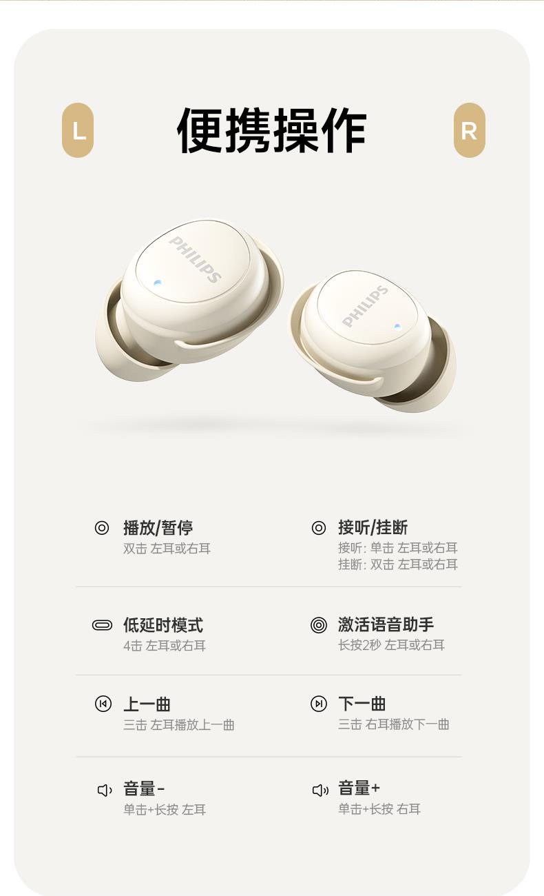 飛利浦入耳式降噪藍(lán)牙耳機(jī)TAT2320