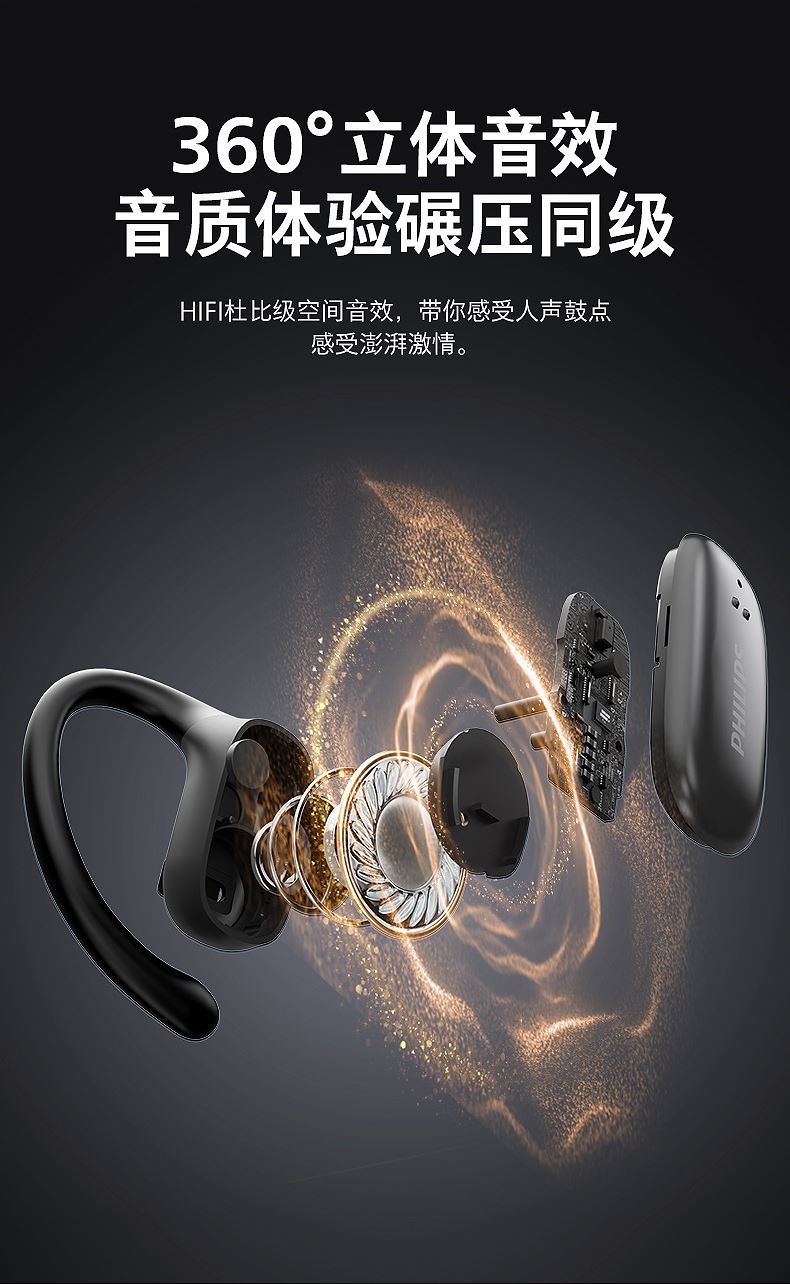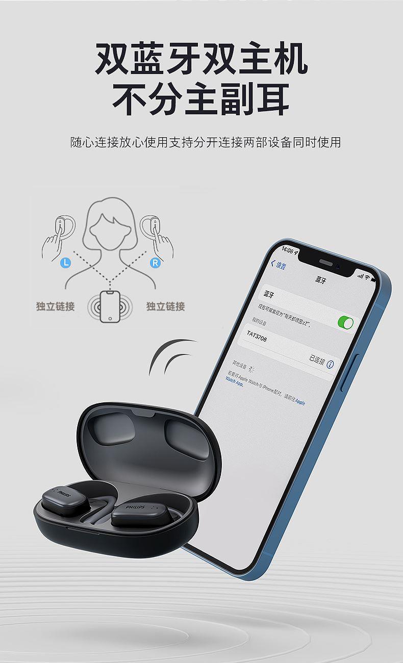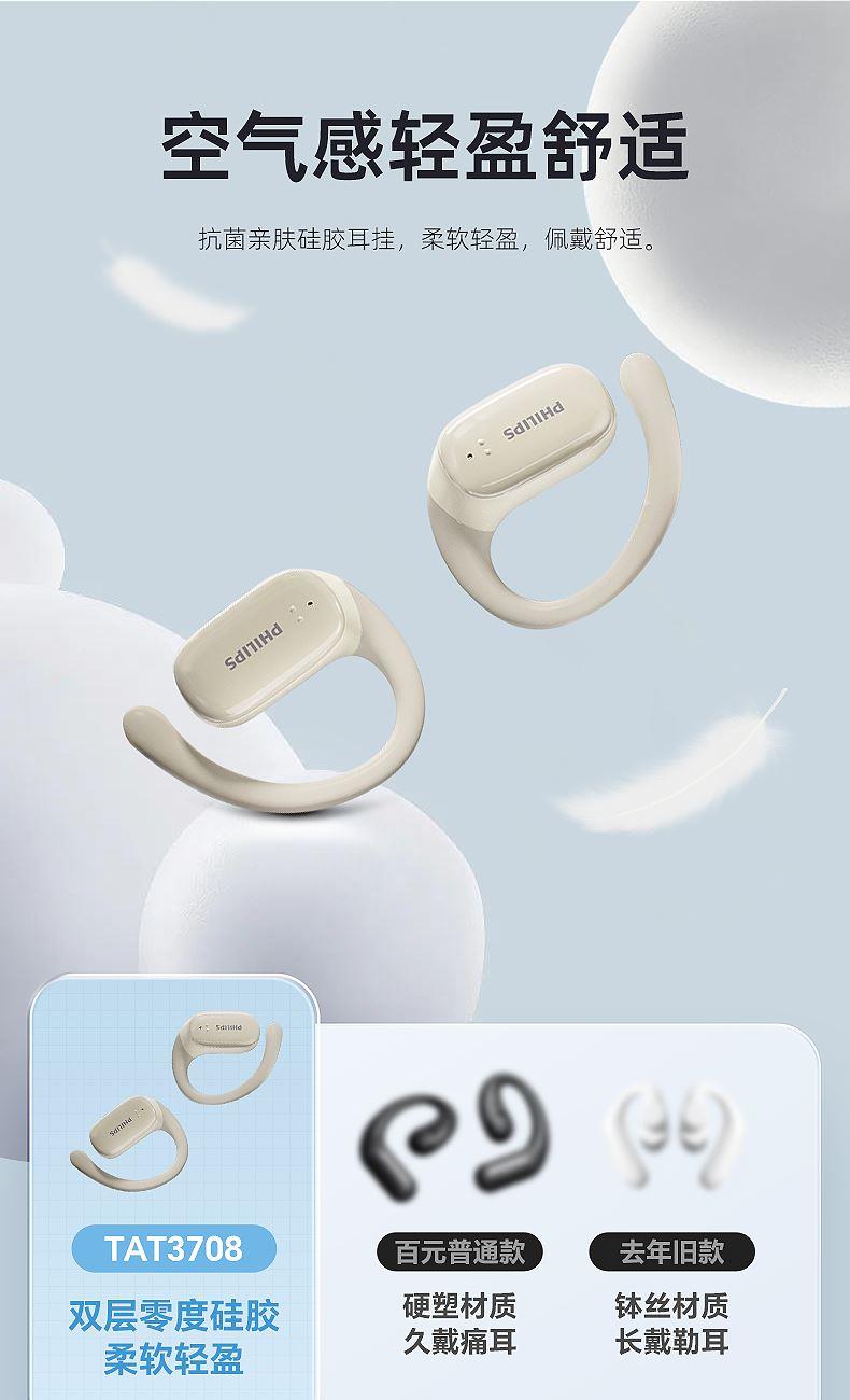 飛利浦掛耳式降噪藍(lán)牙耳機(jī)TAT3708