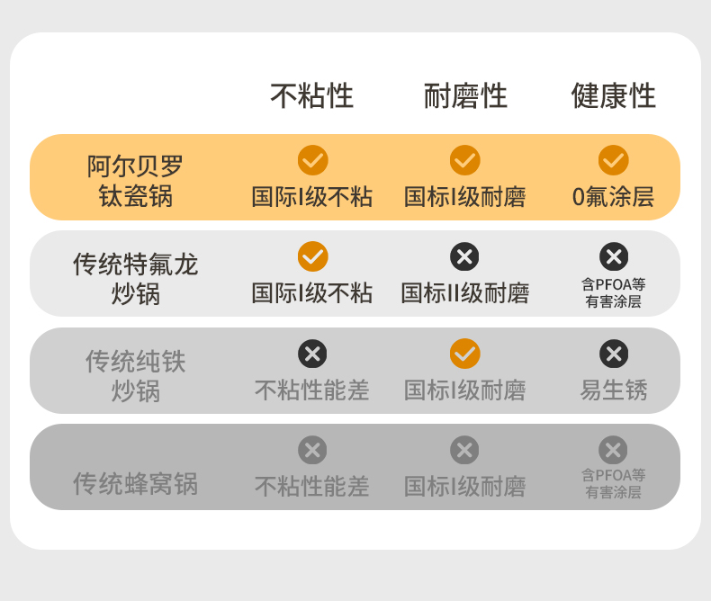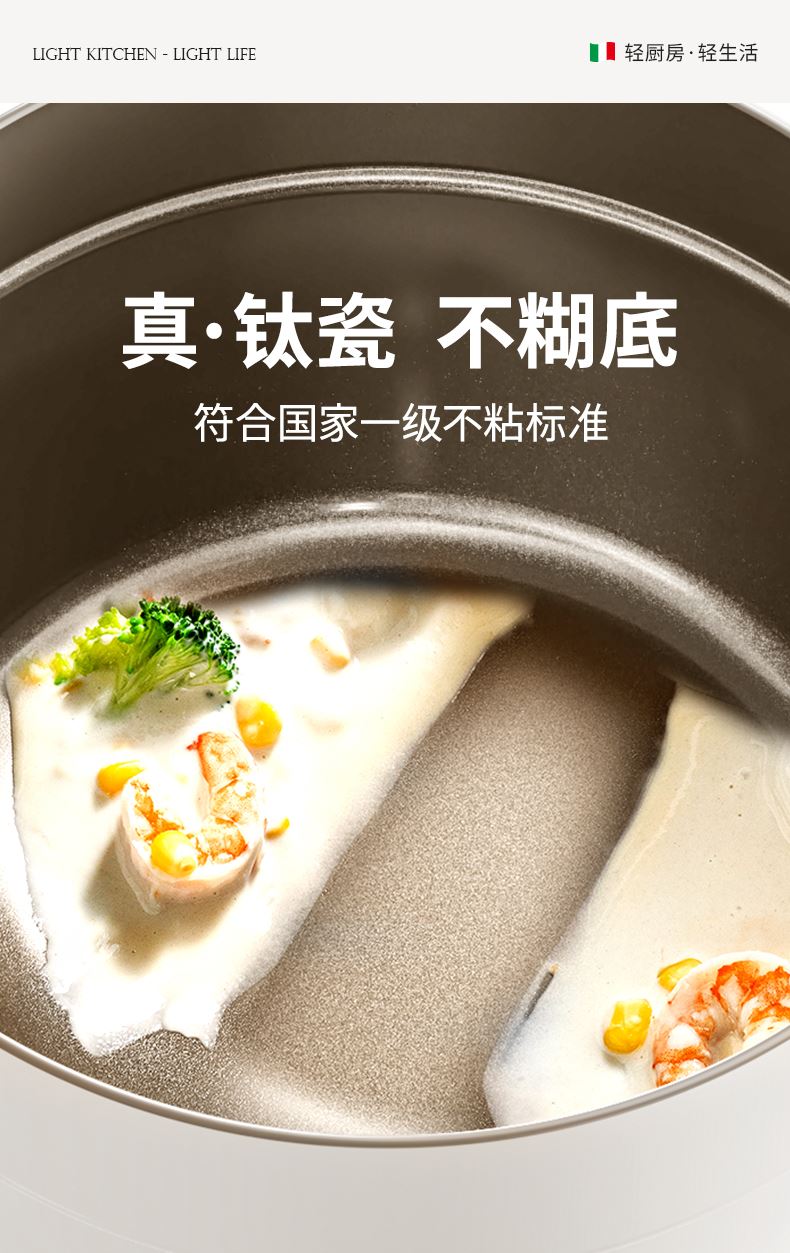 規(guī)格:22cm 材質(zhì):鋁合金+陶瓷 單個尺寸:390*275*168 1、國標1級不粘,鈦不粘不糊底 2、鈦瓷革新材質(zhì),0氟0析出0涂層 3、9HV硬度,持久耐磨不粘 4、鍋體減重約18%,單手可顛 5、可進洗碗機,解放雙手。