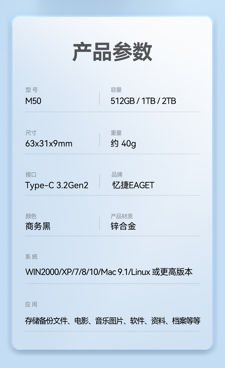 (EAGET)憶捷M50高速移動固態(tài)硬盤迷你商務1TB