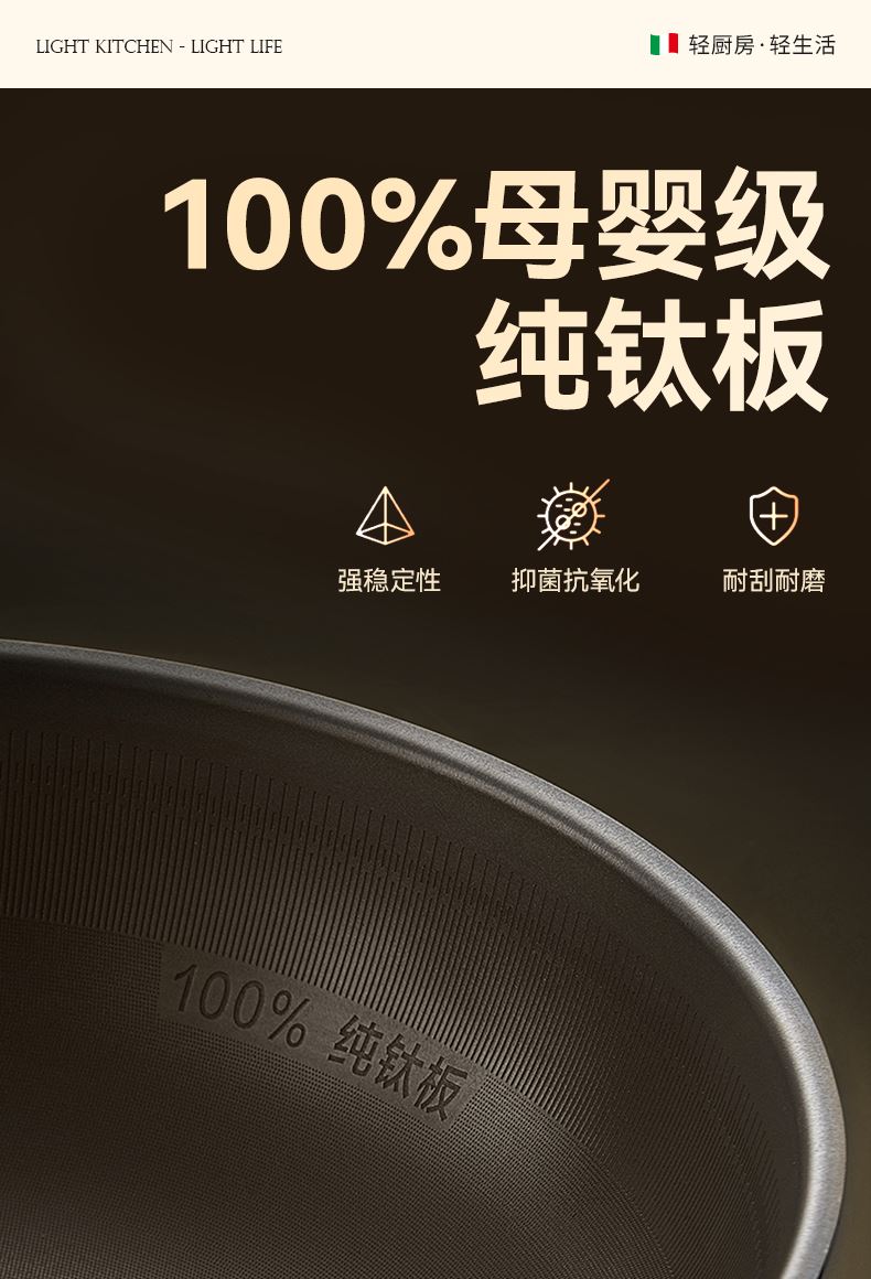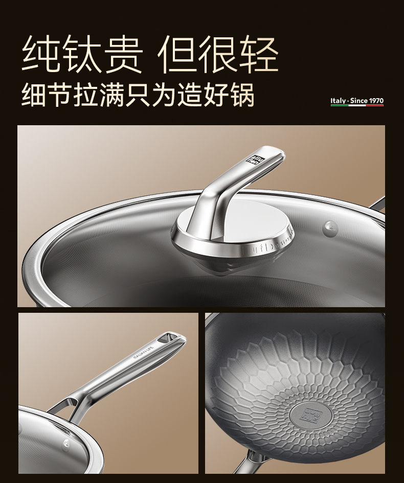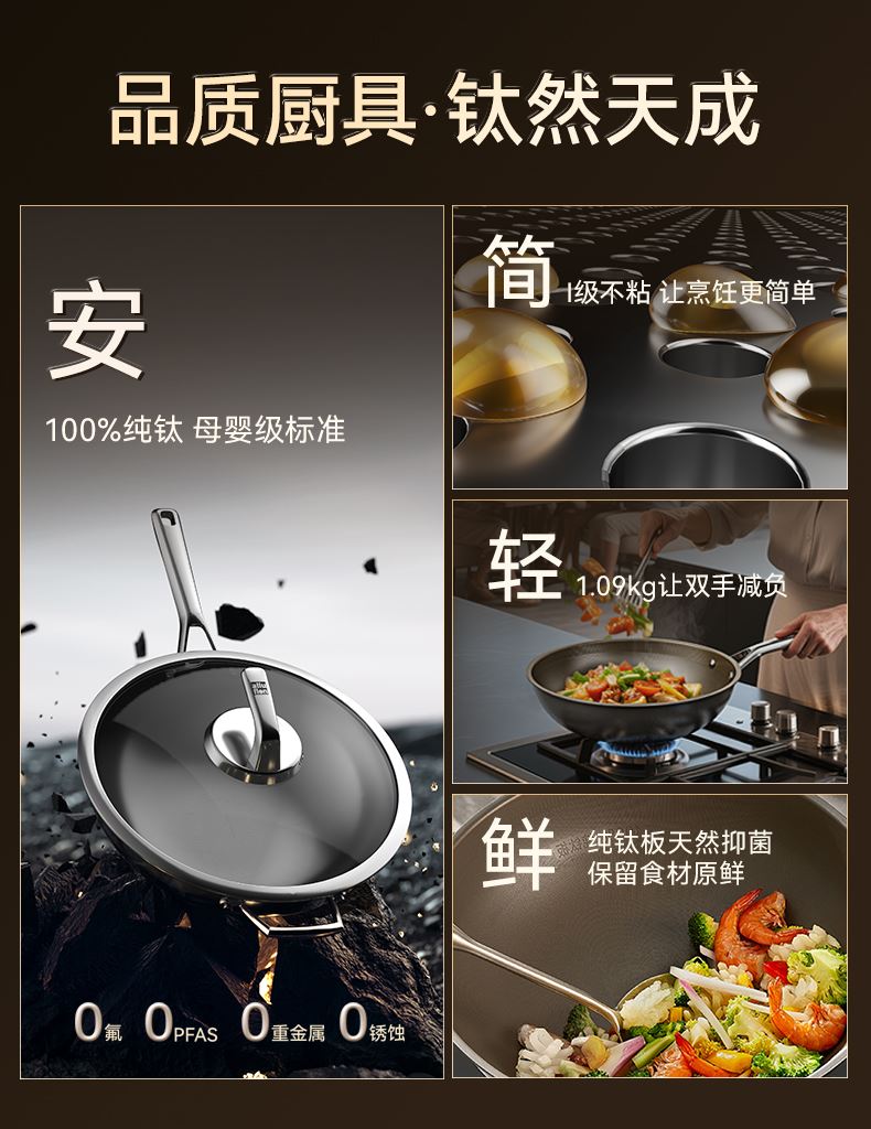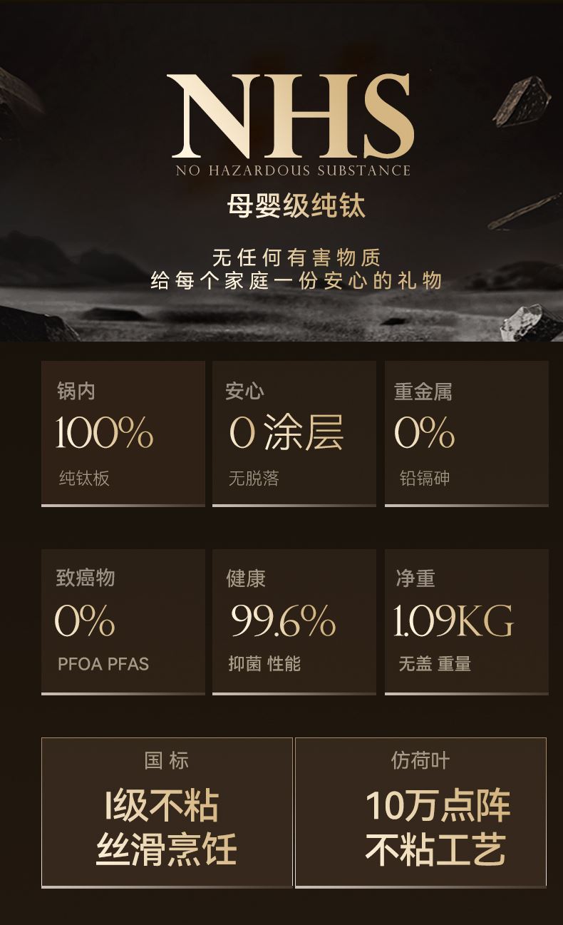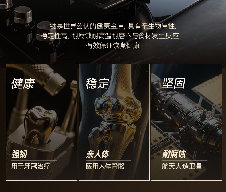 1、兩層鈦基材,內(nèi)里高純度健康鈦,無重金屬析出,安全更健康
