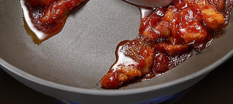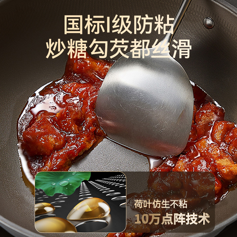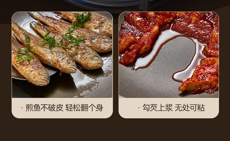 2、內(nèi)微孔蝕刻,國標(biāo)一級不粘,鋼鏟也耐刮,暢想低脂和健康烹飪